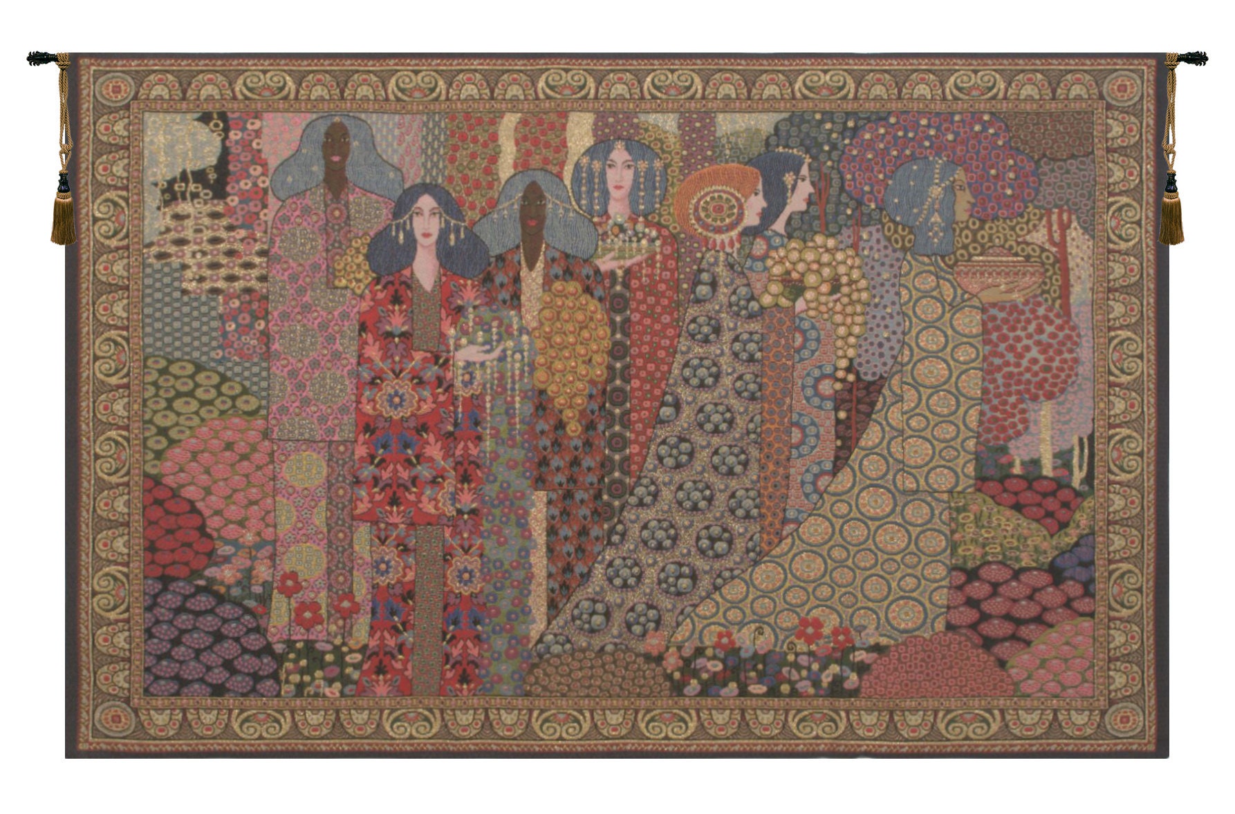 Add a touch of magic, mystery, and Art Nouveau elegance to your walls with this exquisite Aladin (Aladdin) European Wall Tapestry. This jacquard woven tapestry draws inspiration from the mesmerizing work of Vittorio Zecchin (1878โ1947) โ a renowned Italian artist known for his dreamy, decorative interpretations of classical stories.