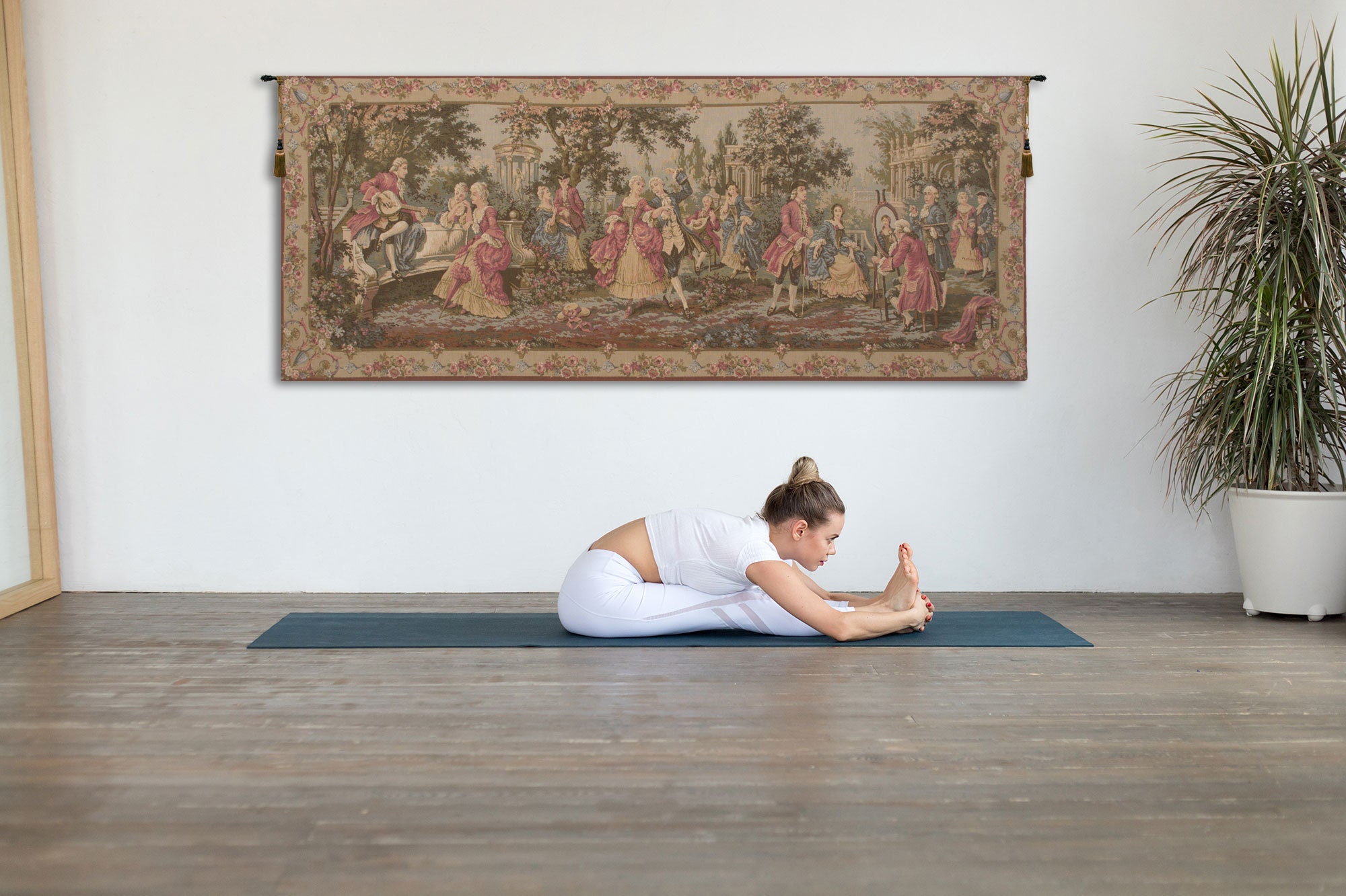 Add timeless elegance and charm to your home with this exquisite Society in the Park Belgian Jacquard Woven Wall Tapestry. Inspired by a delightful pastoral masterpiece by Franรงois Boucher (1703โ1770), this wall hanging brings the idyllic beauty of the Rococo period right into your living space.