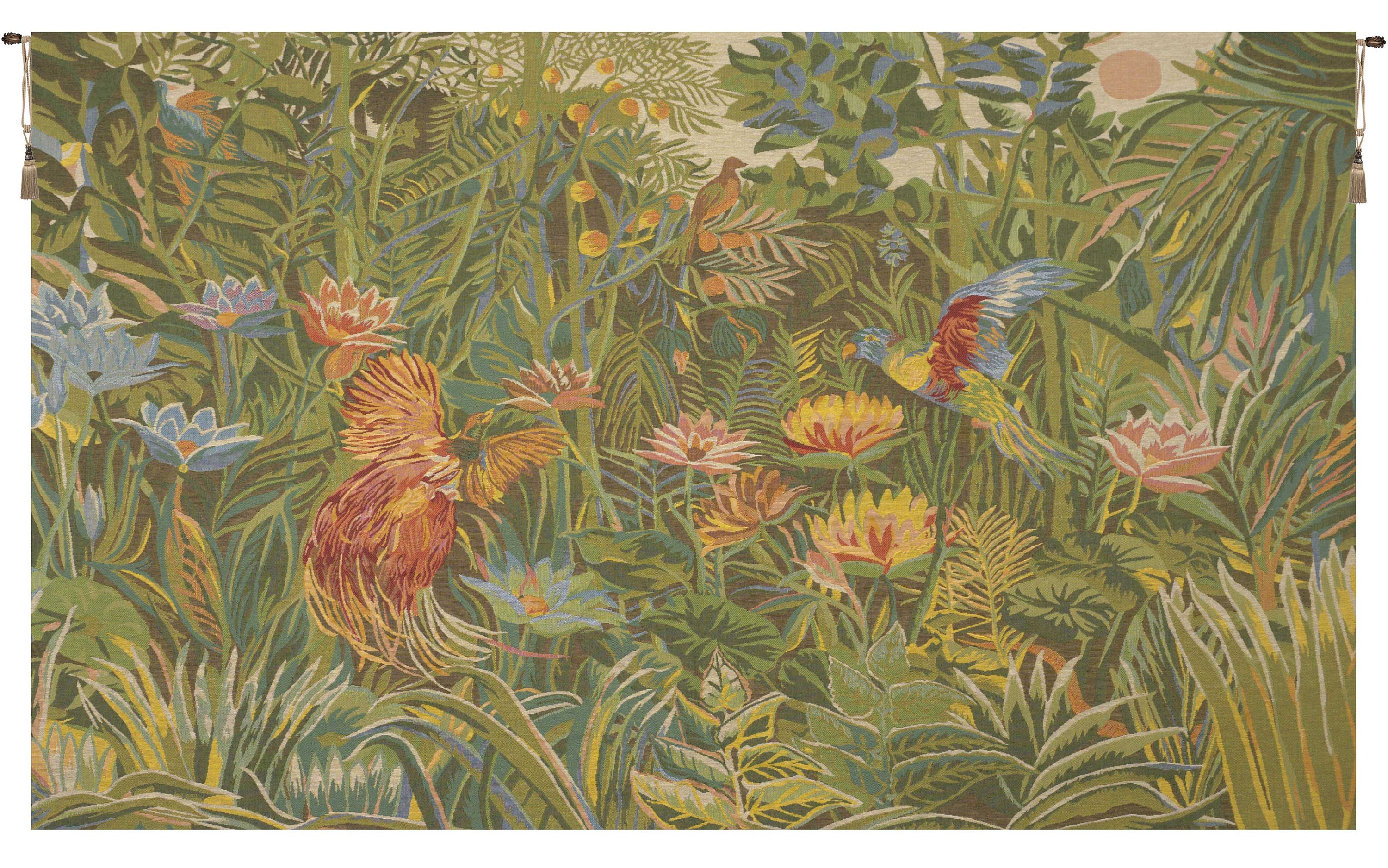 Tropical Enchantment is a Belgian-made jacquard-woven wall tapestry. This work is an extract of a painting by Henri Rousseau (1844-1910), also known as Douanier Rousseau.