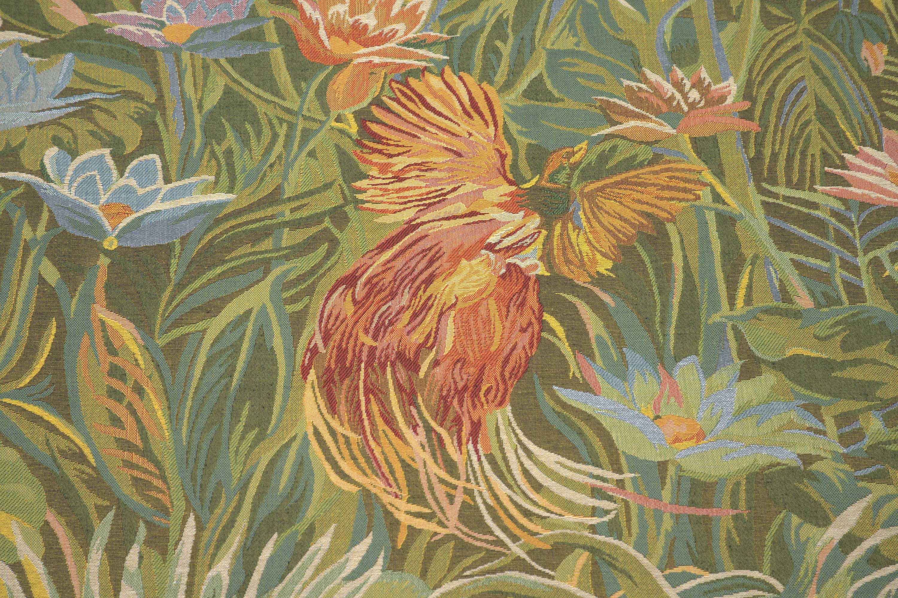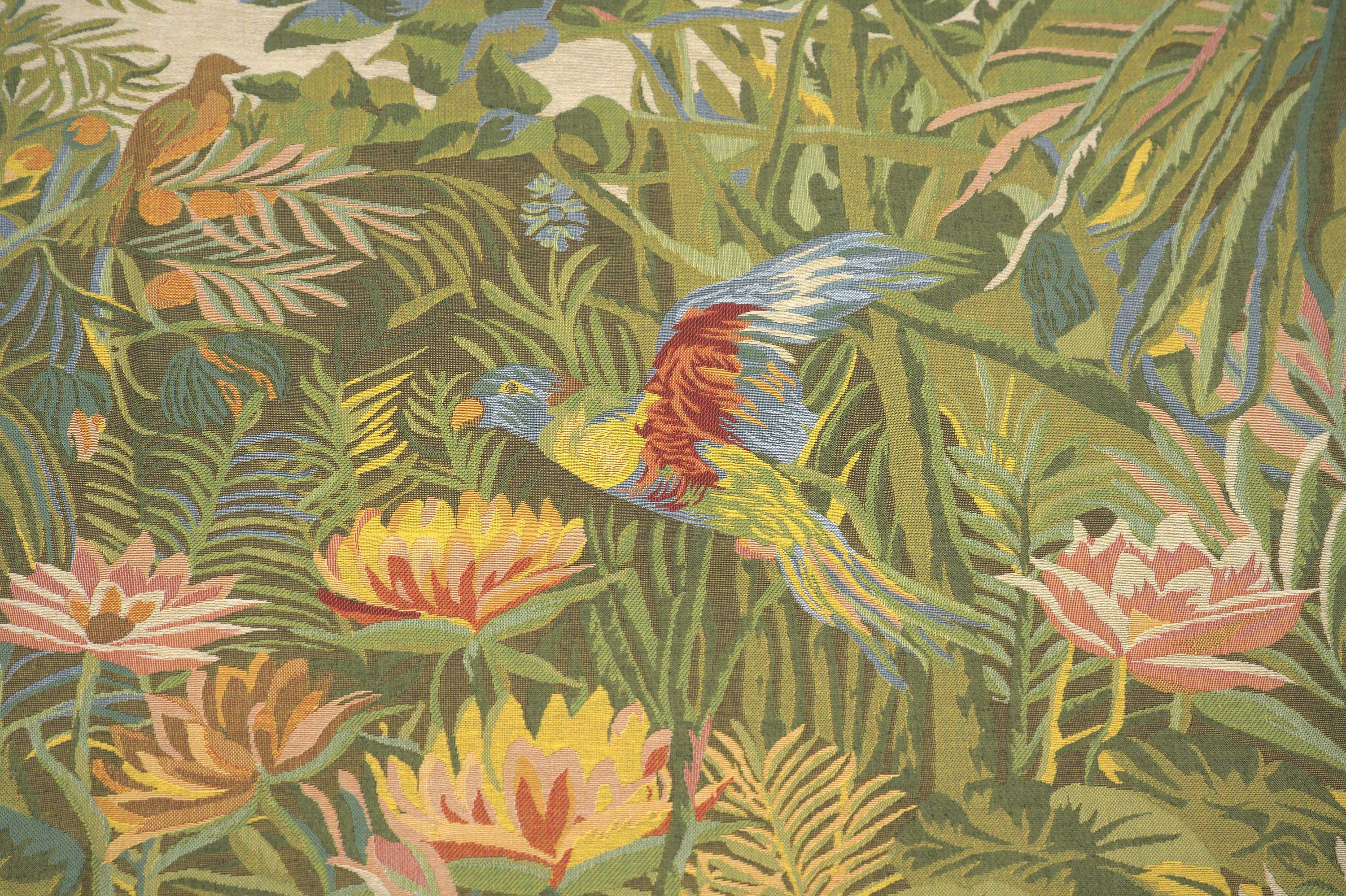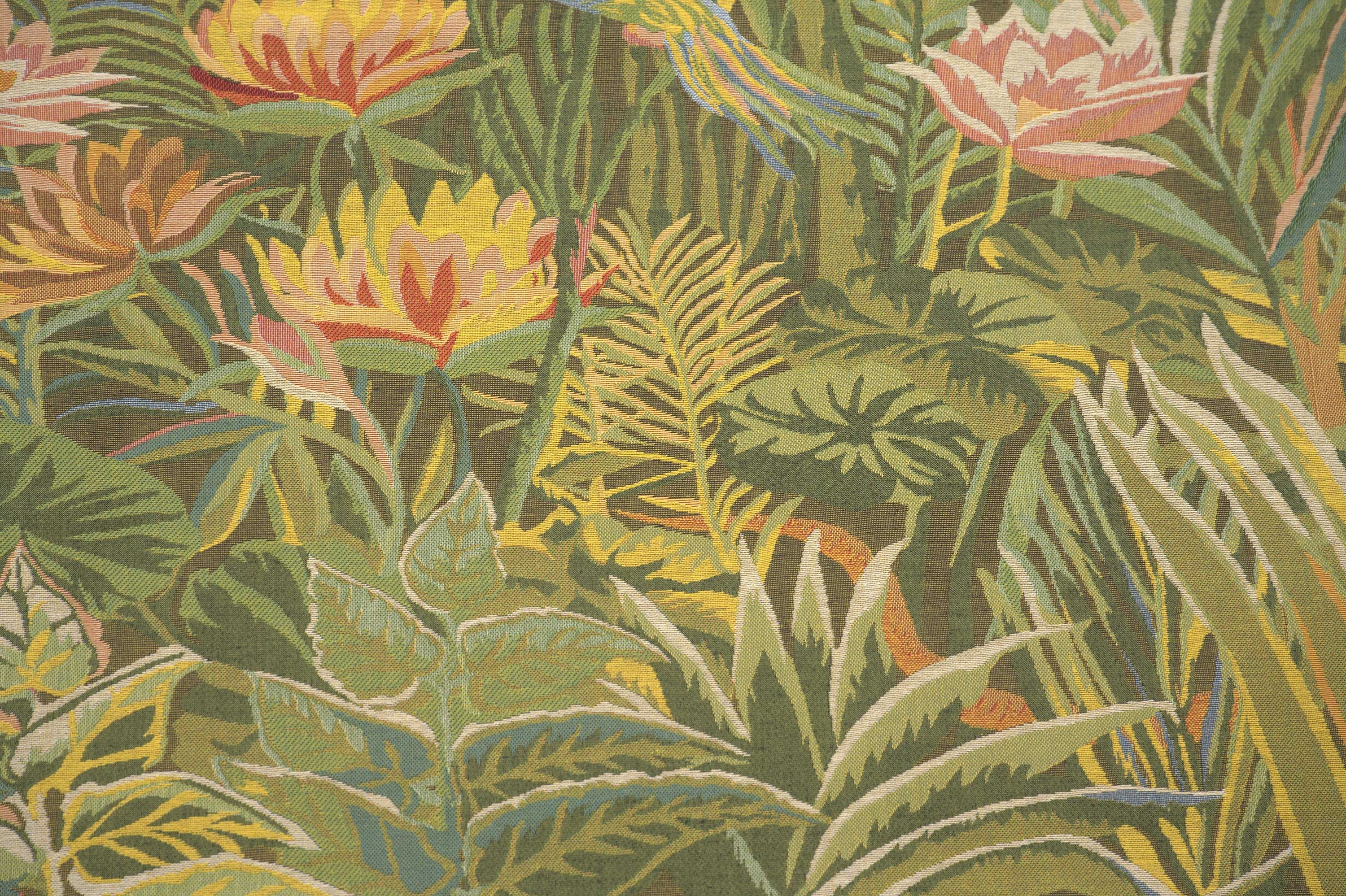 Tropical Enchantment is a Belgian made jacquard woven wall tapestry. This work is an extract of a painting by Henri Rousseau (1844-1910), also known as Douanier Roussea.