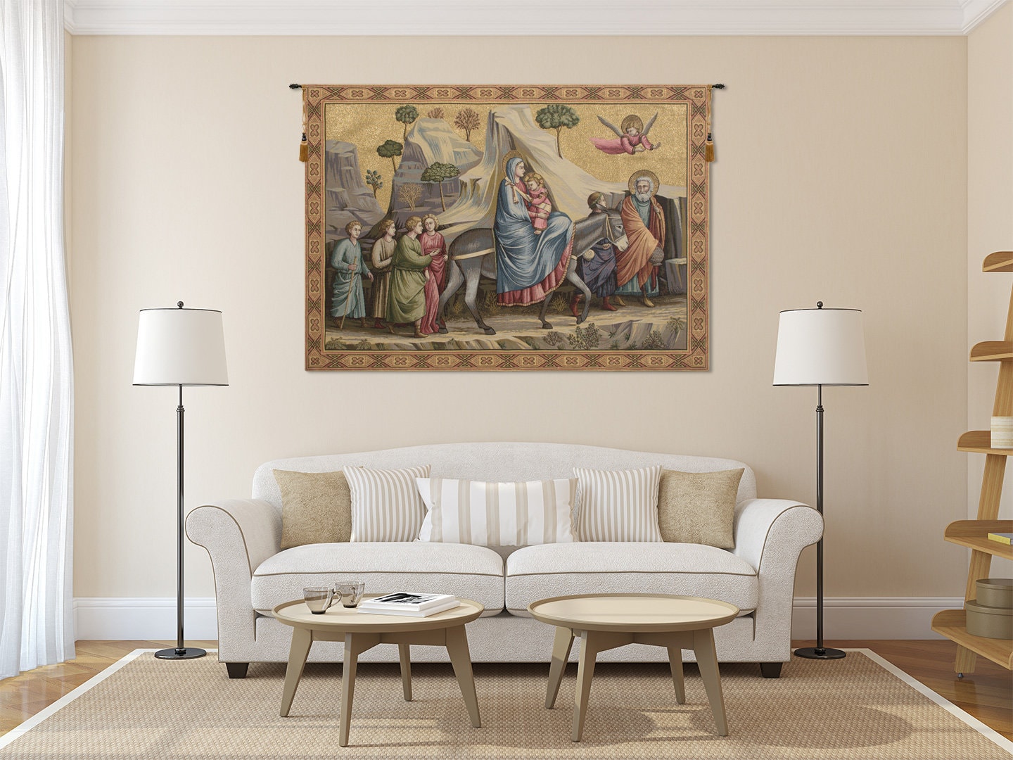 Celebrate the dawn of Renaissance artistry with the Flight into Egypt Italian Jacquard Woven Wall Tapestry, inspired by the timeless masterpiece of Giotto di Bondone (1266โ1337).