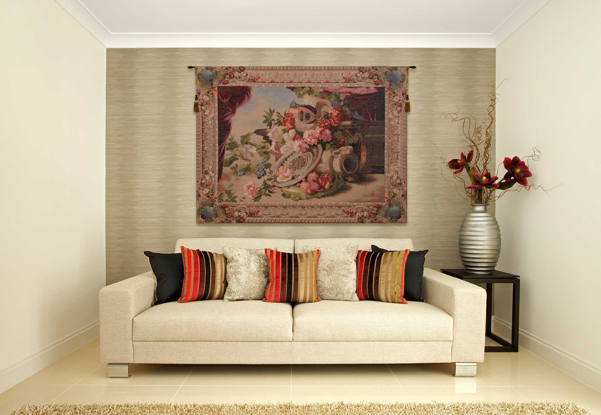 Taking divine inspiration from the Royal Beauvais Workshops of the 19th century, our Mandolin Tapestry brings the beauty of woven artistry to the home. Also recognized as the “Mandoline,” this jacquard woven tapestry wall hanging is a French Impressionistic composition of country life of the period. It brings the beauty of nature, music, and the arts to your surroundings with fine detail and ornate style. The tapestry comes expertly woven in wool and cotton with incredible color saturation for incredible highlighting and shading. Backed with lining and tunneled for easy hanging. Woven in France.
