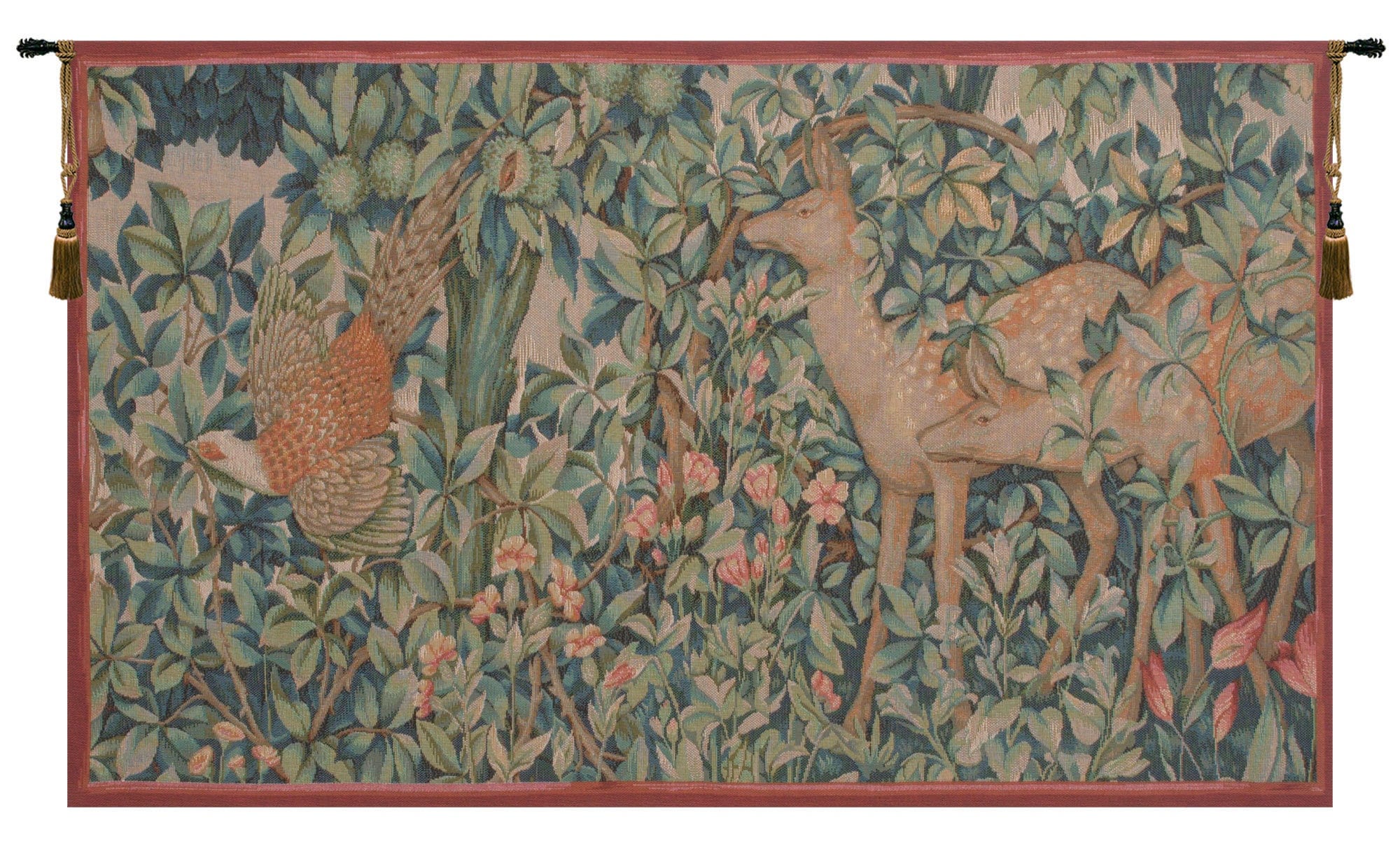 Add a touch of heritage and wilderness to your interior with the Pheasant and Doe Tapestry Cushion Cover, inspired by the famed 19th-century designer William Morris, founder of the British Arts & Crafts movement. This exquisitely woven piece captures the serenity of nature, with a vividly feathered pheasant resting among tall grasses as a graceful doe peeks through the lush vinesโreminiscent of Morris's deep reverence for flora and fauna.