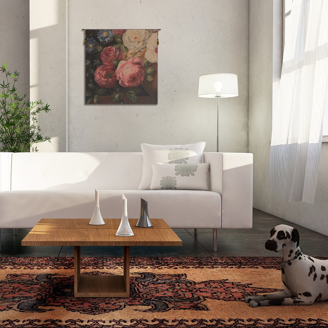 Infuse your space with the timeless beauty of blooming roses with this exquisite European Floral Wall Tapestry. Woven using traditional French jacquard techniques, this vibrant textile art piece showcases a lush arrangement of colorful roses, designed to bring elegance and warmth to any interior.