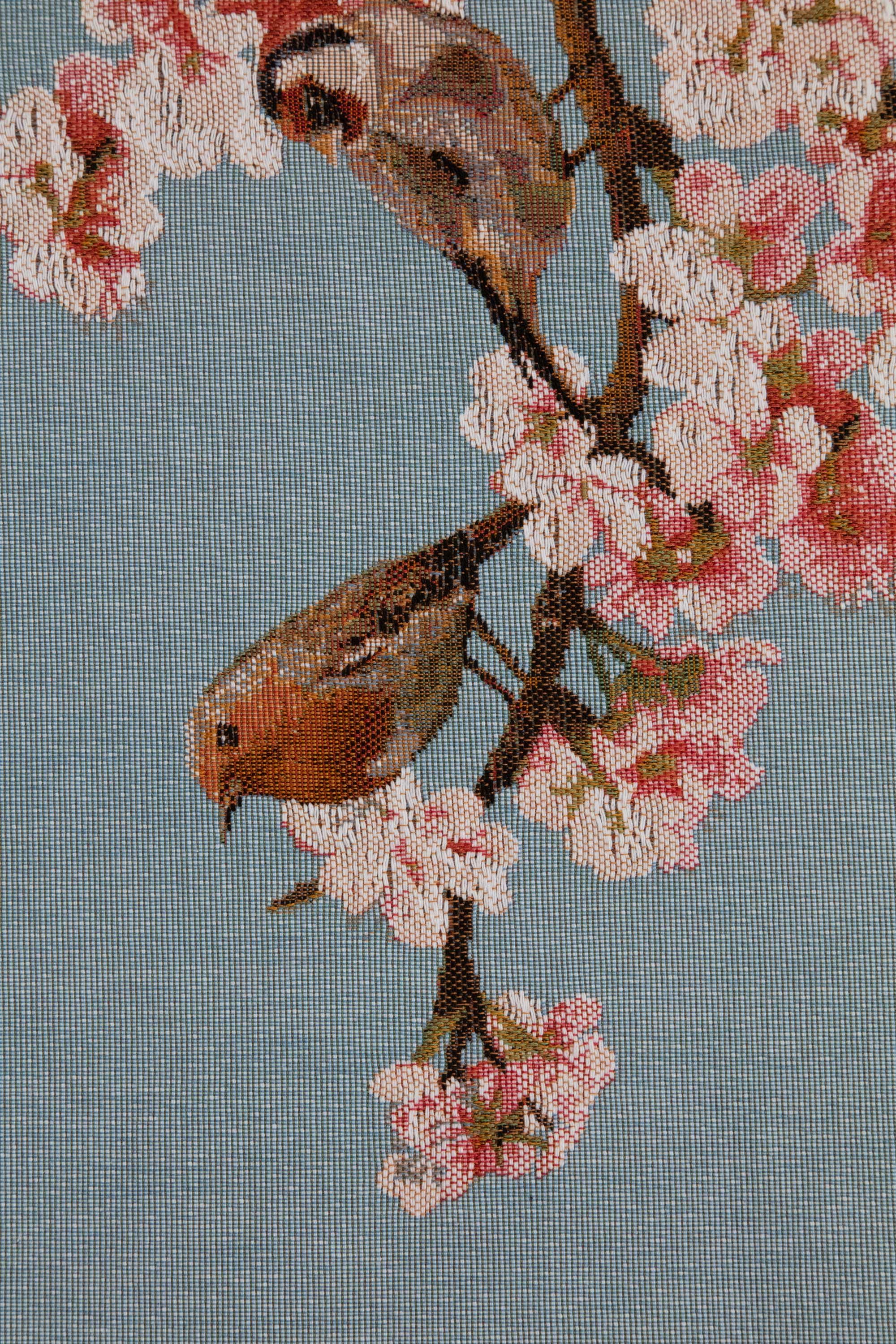 โ Charming Bird & Floral Design โ Features small garden birds perched on a fruit tree branch, woven in stunning detail.