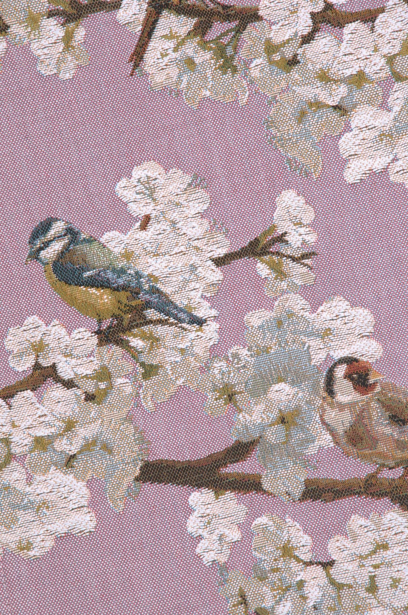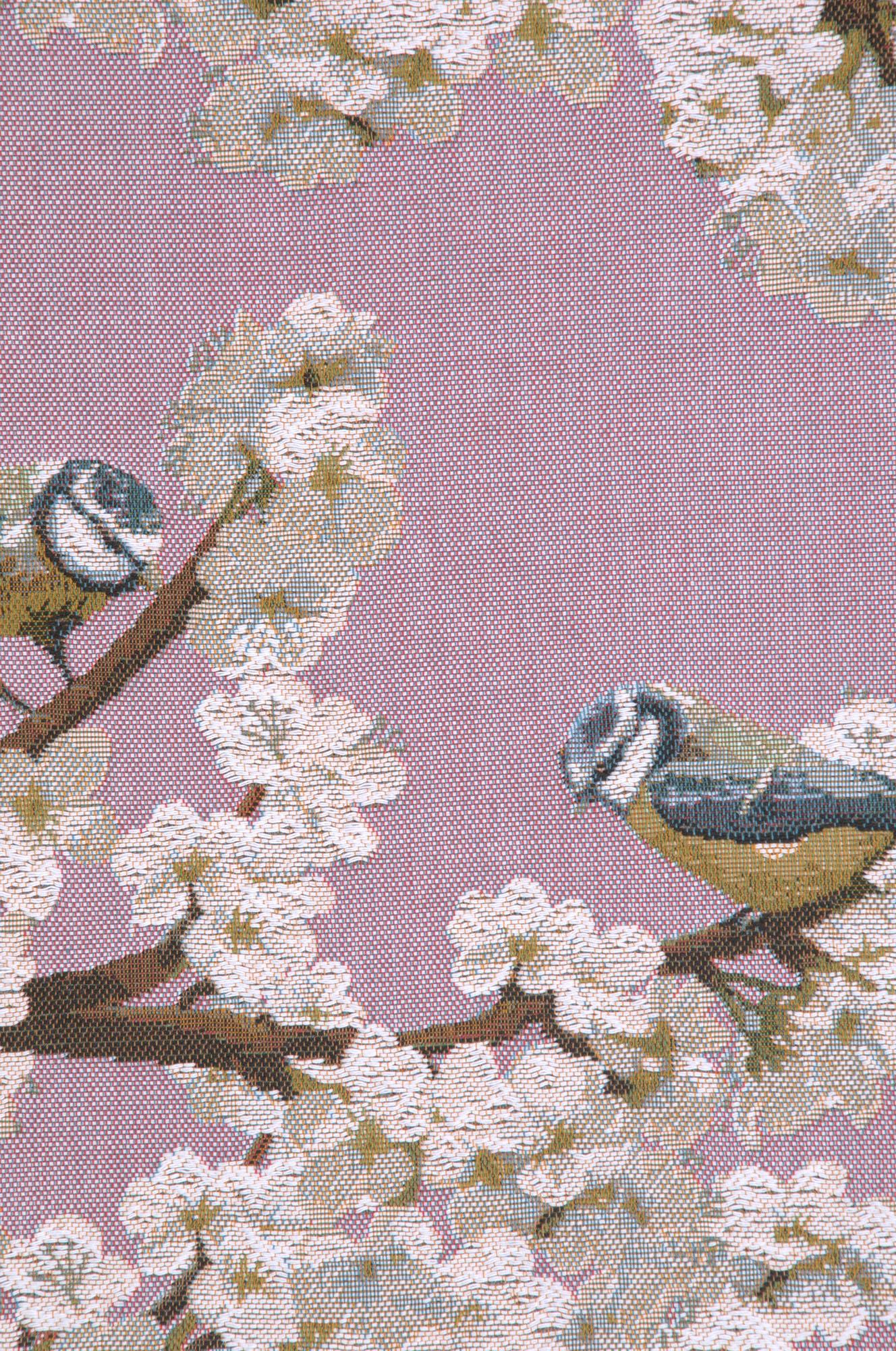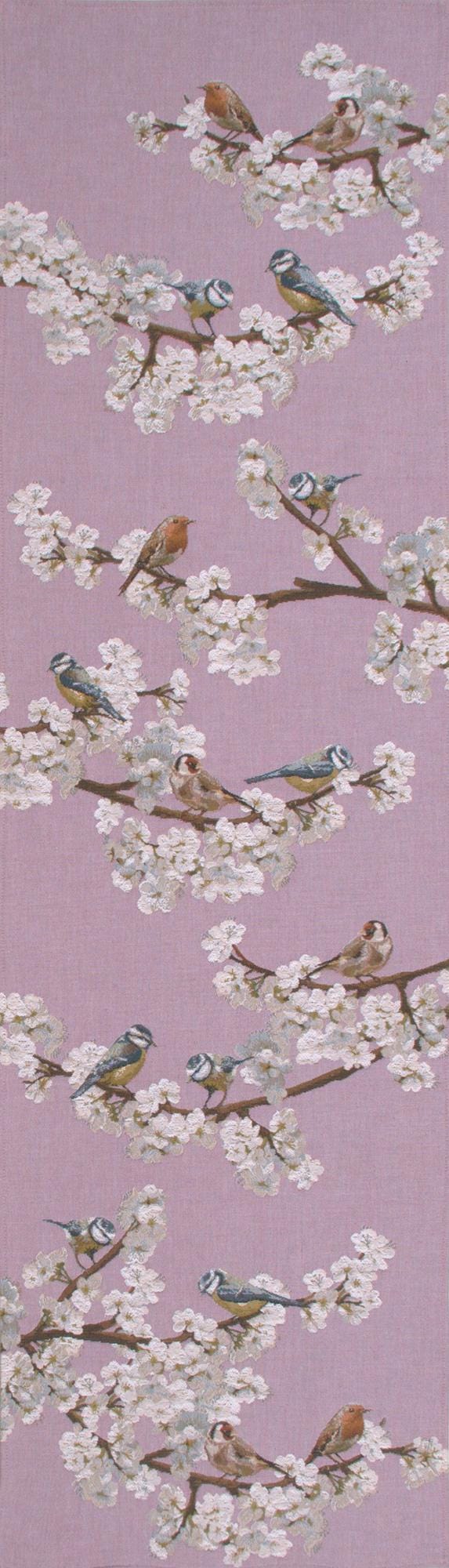 Brighten your table setting with the Passerines Branch Pink Table Runner, featuring a delicate scene of songbirds resting on a blossoming fruit tree branch. Designed to bring a fresh, springtime feel to any space.