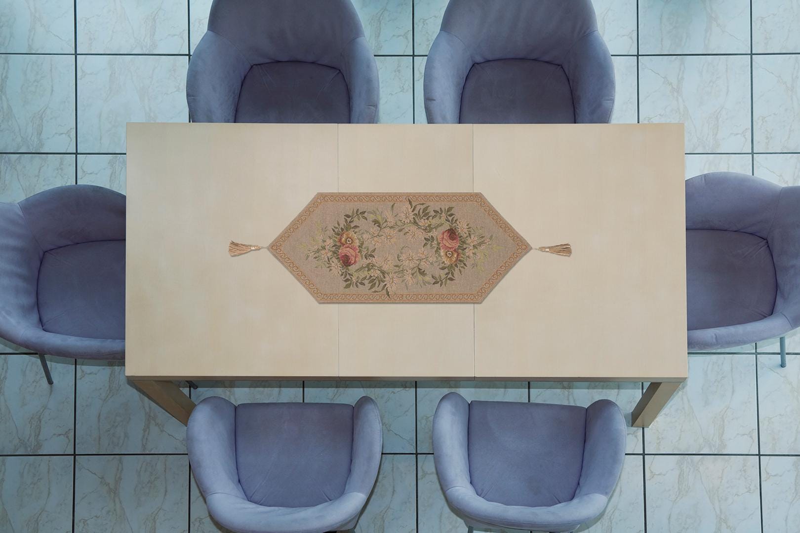 ๐ซ๐๐ง๐๐ก ๐ญ๐๐ฉ๐๐ฌ๐ญ๐ซ๐ฒ ๐ญ๐๐๐ฅ๐ ๐ซ๐ฎ๐ง๐ง๐๐ซ, woven in France with exquisite detail. Its elegant ๐๐ฅ๐จ๐ซ๐๐ฅ ๐๐๐ฌ๐ข๐ ๐ง brings charm to dining tables, consoles, or sideboards.
