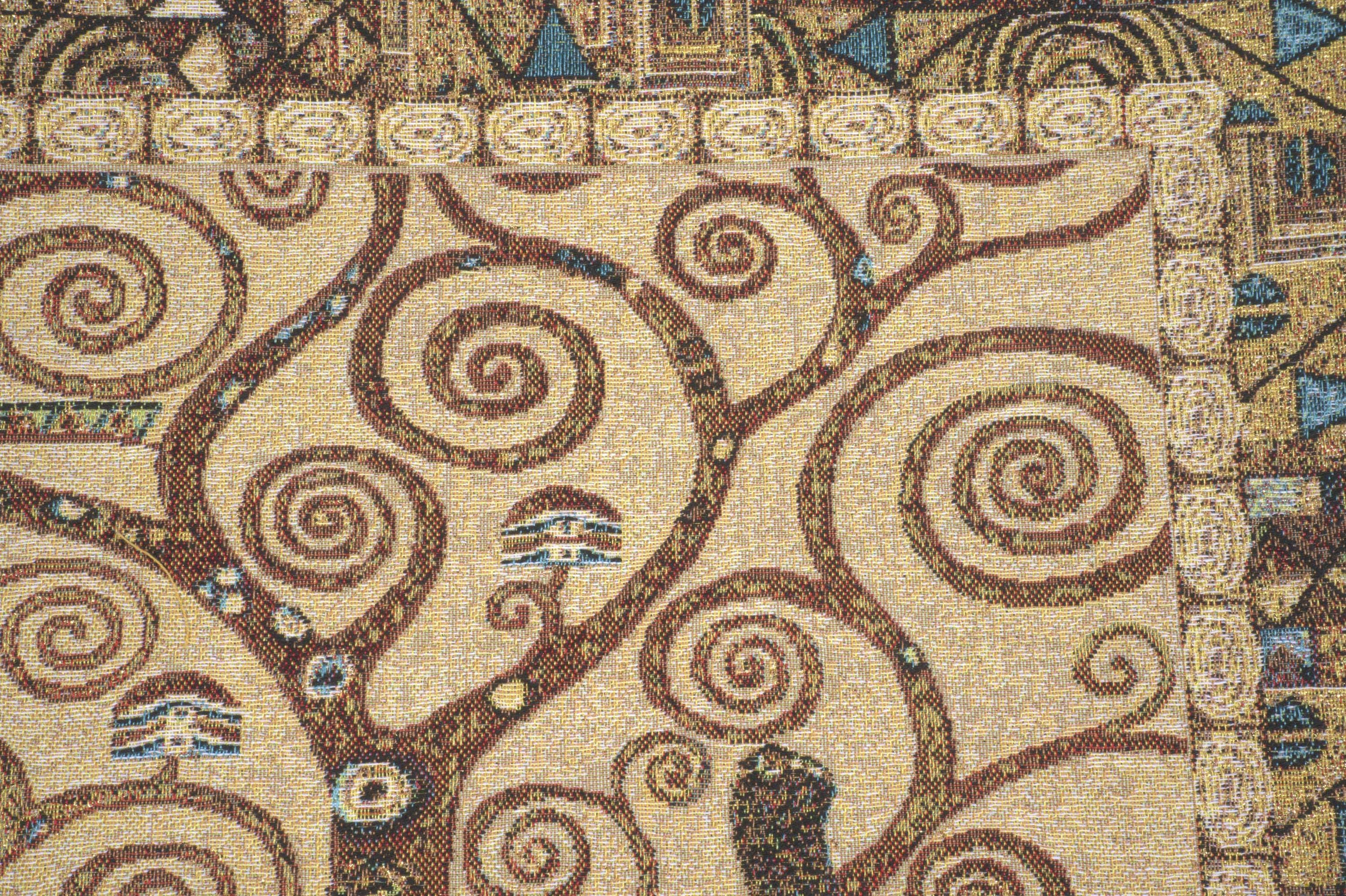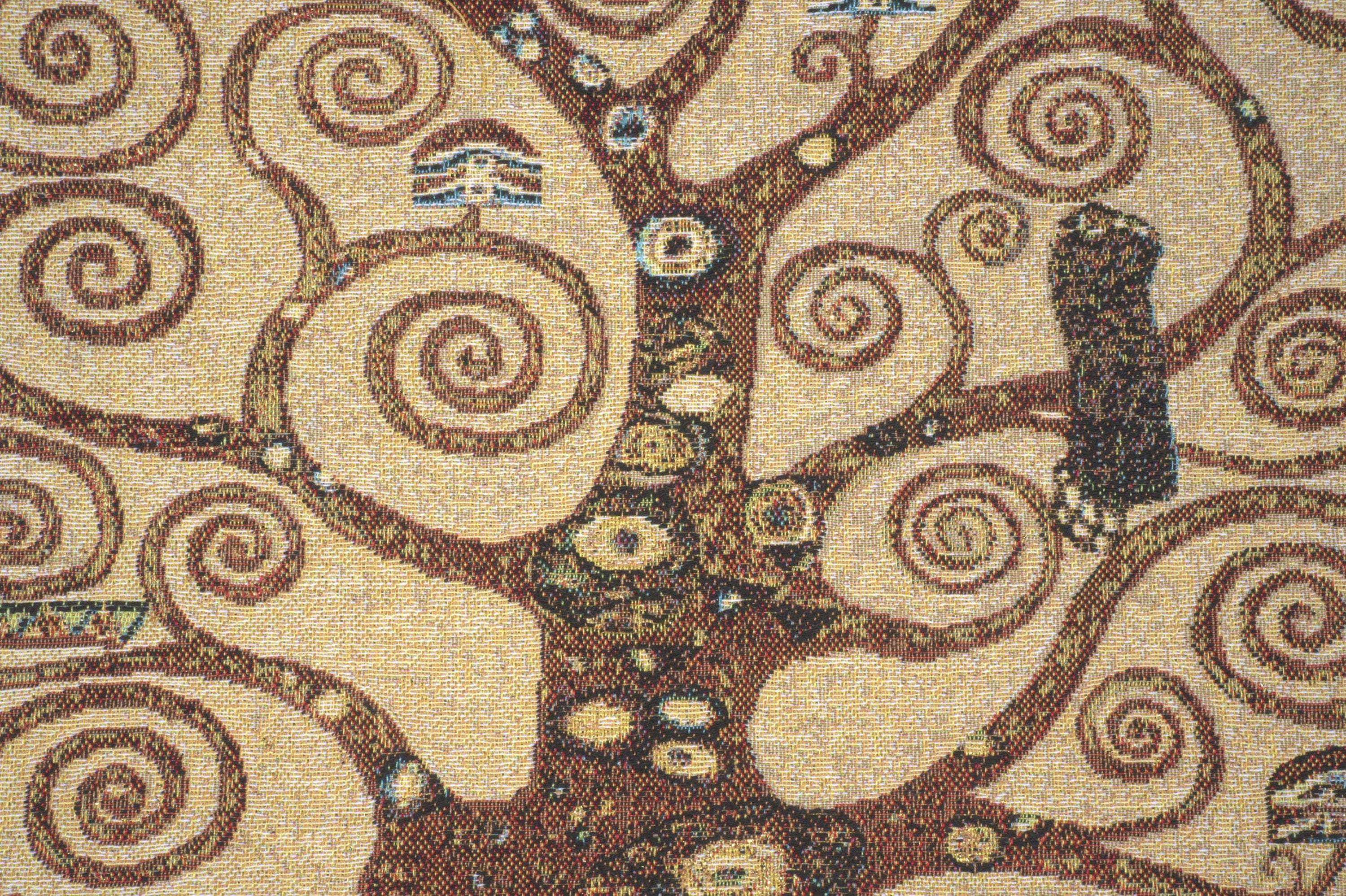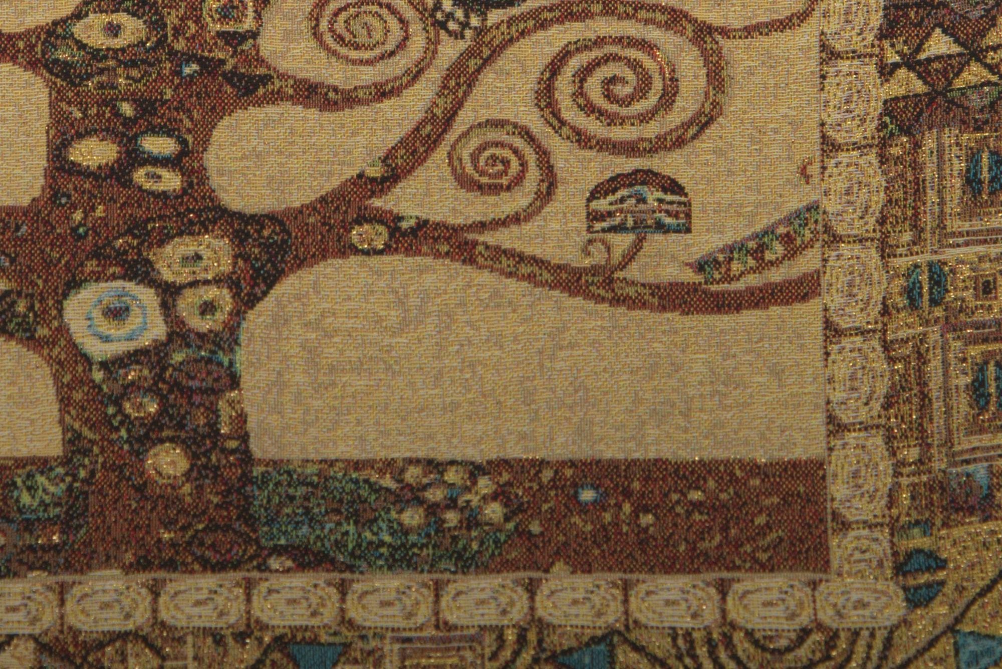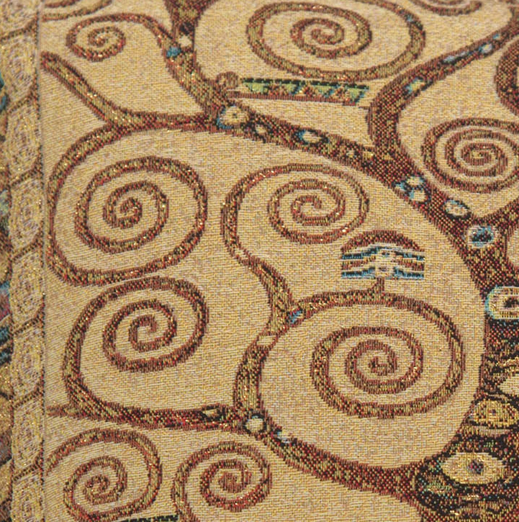 High quality Belgian-made woven pillow case with velvet backing inspired by Gustav Klimtโs Tree of Life