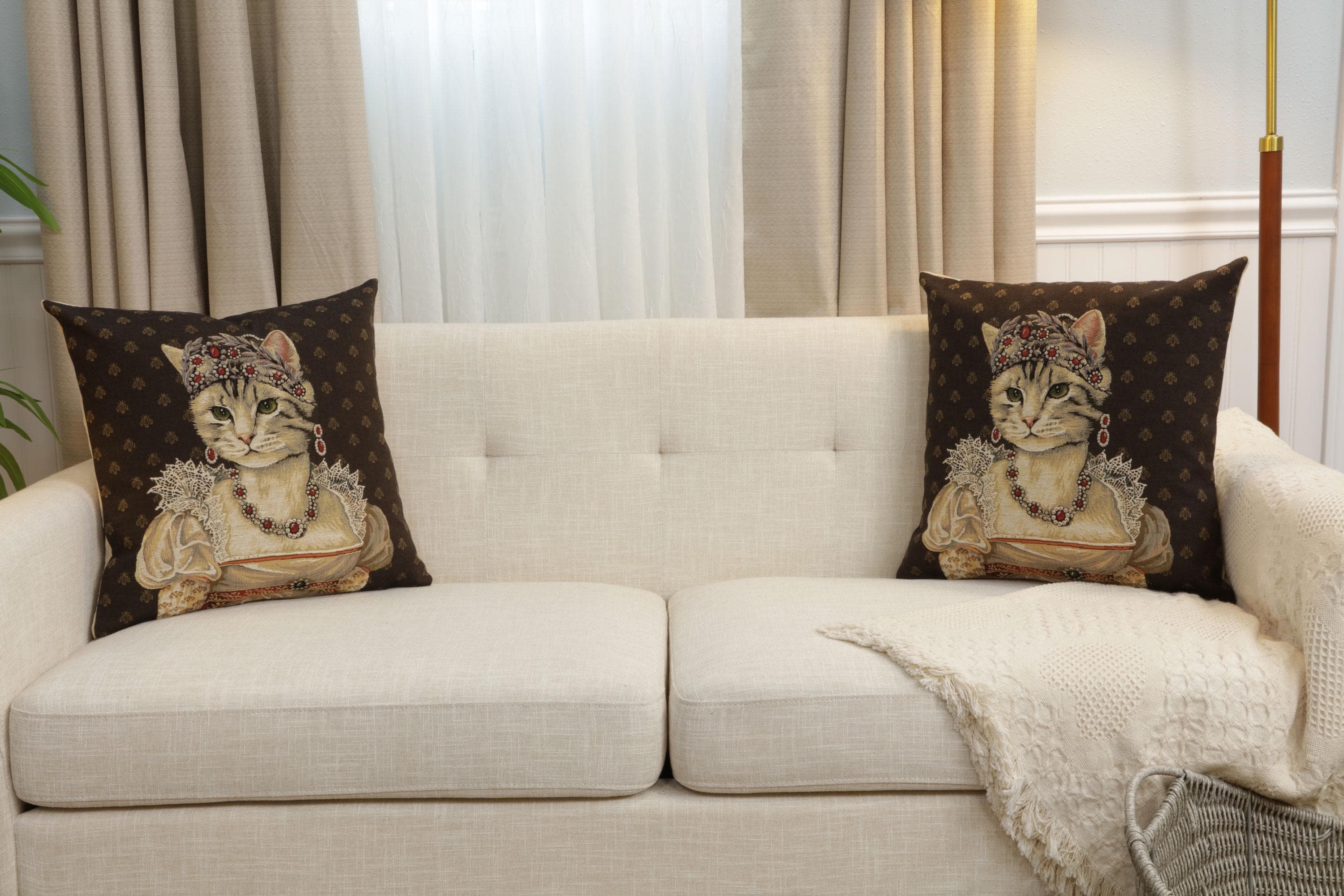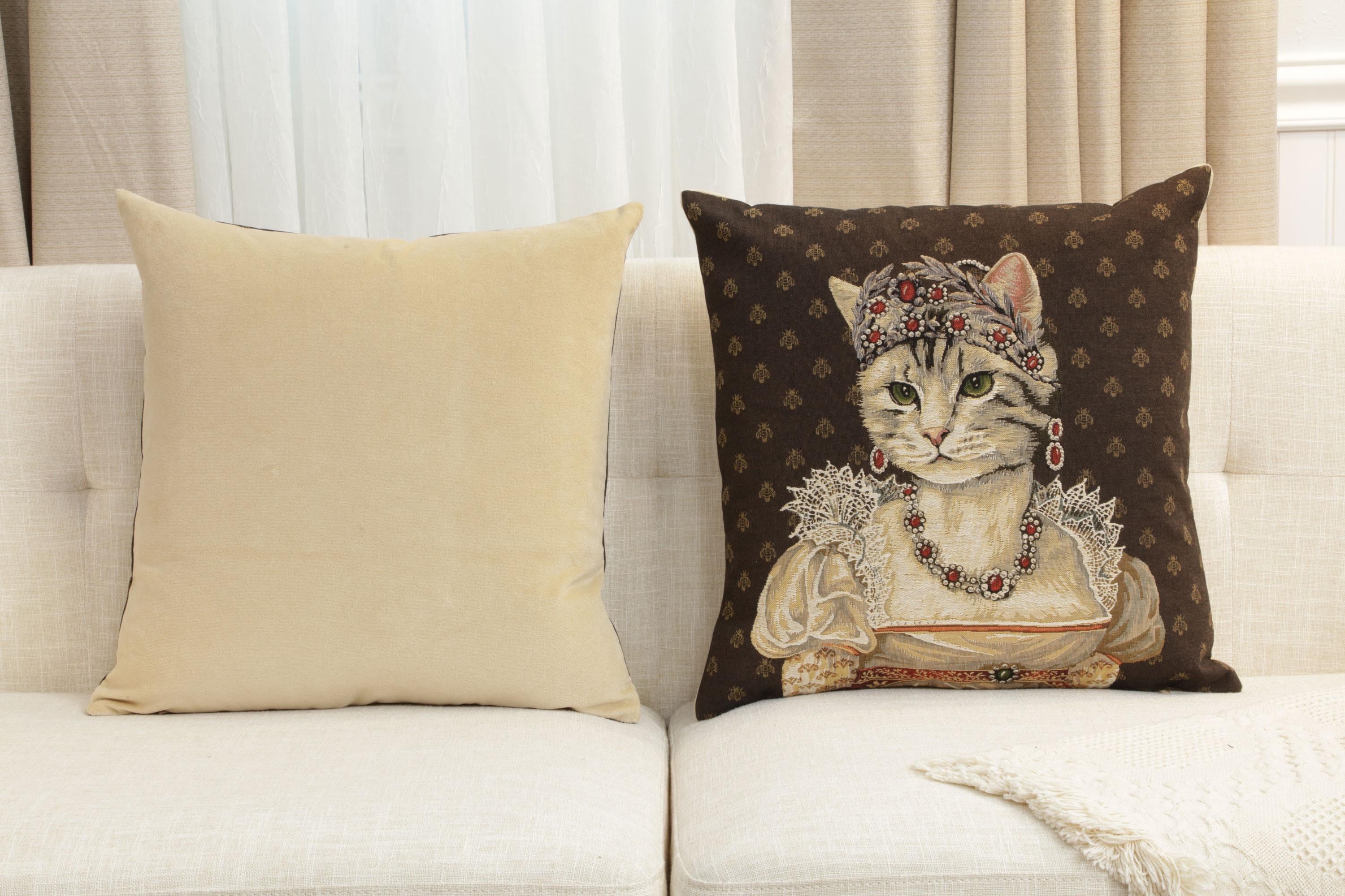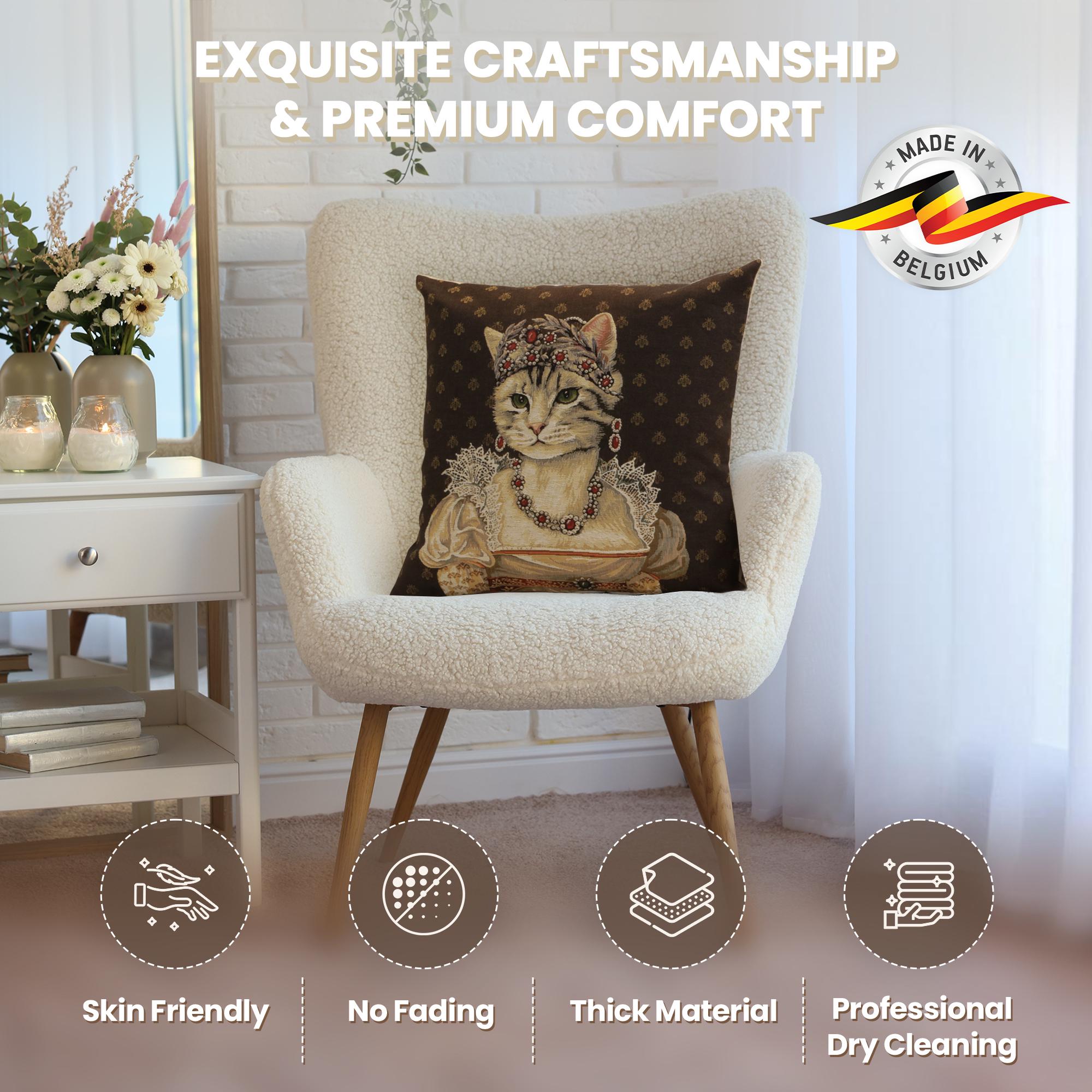 ✨ European Craftsmanship – Woven in Belgium with fine jacquard detail and backed with soft velvet lining, this decorative throw pillow cover combines elegance with durability. Perfect for sofas, bedrooms, studies, or as a unique cat lover gift. (Pillow insert not included.)