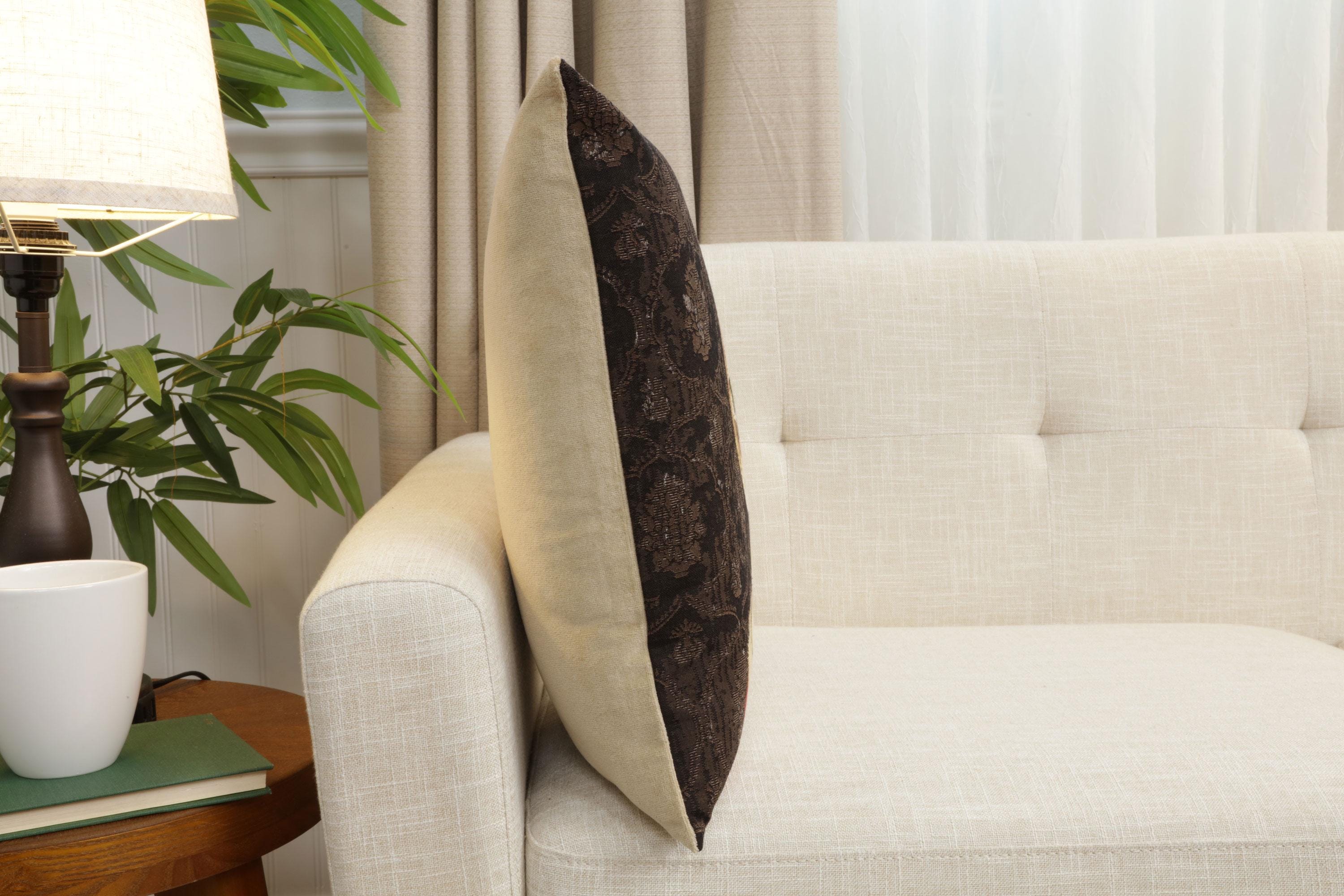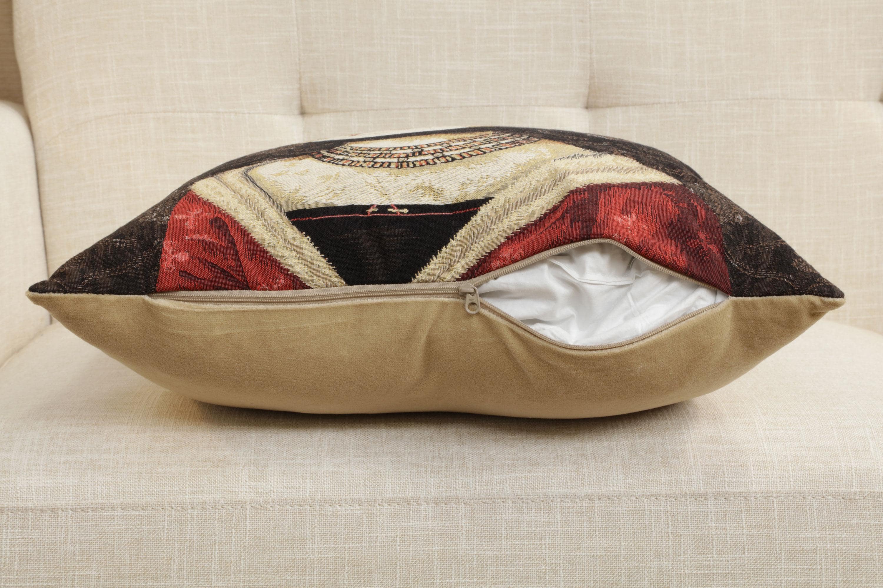 Cushion cover backed with lining and zipper. Infill not included.