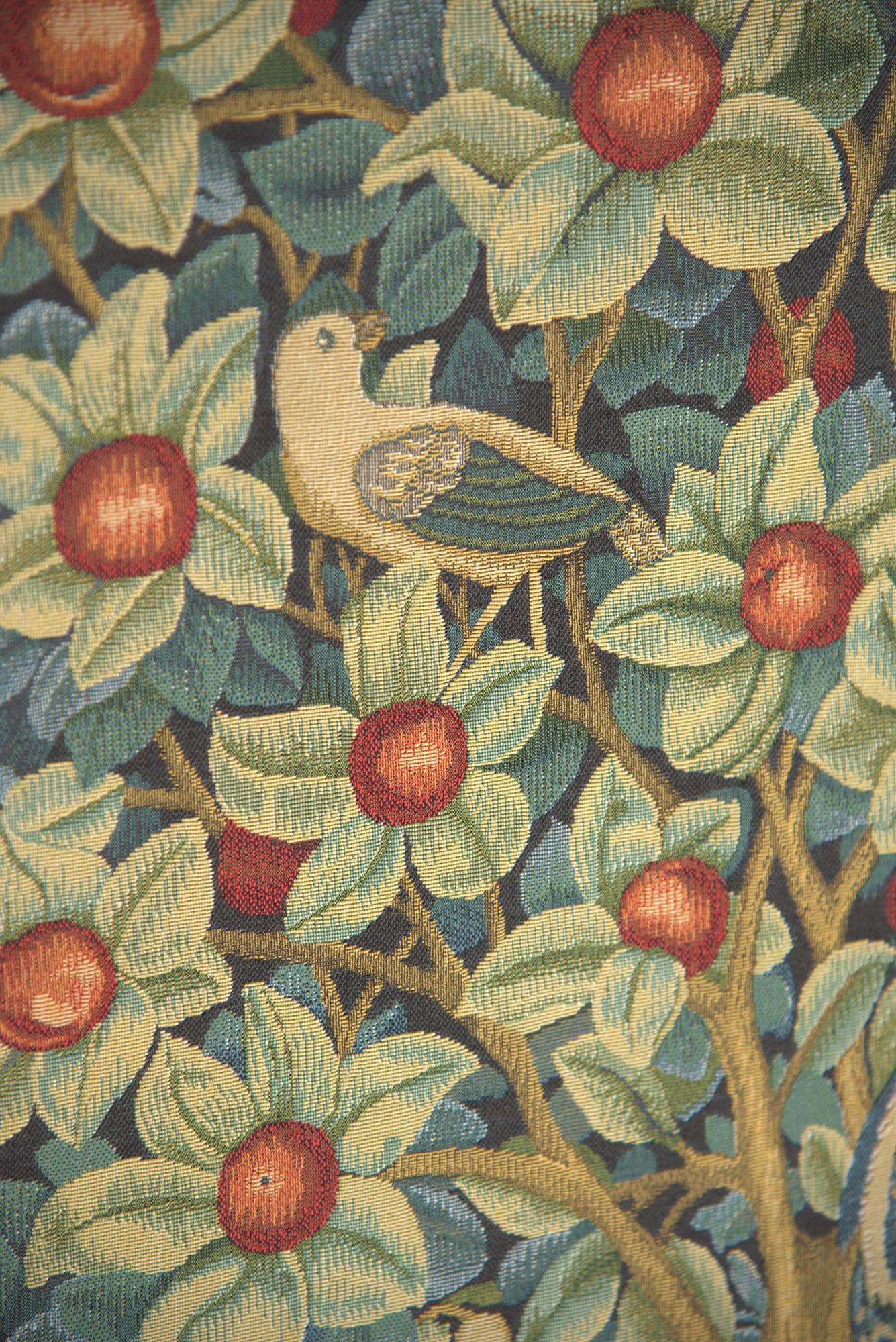 This slender wall hanging showcases vibrant woodpeckers nestled among intricately patterned trees, wild bushes, and flourishing greenery, evoking the depth and serenity of a forest landscape. The layered colors and ornamental foliage motifs reflect Morrisโs iconic style, blending romantic naturalism with elaborate medieval design influences.