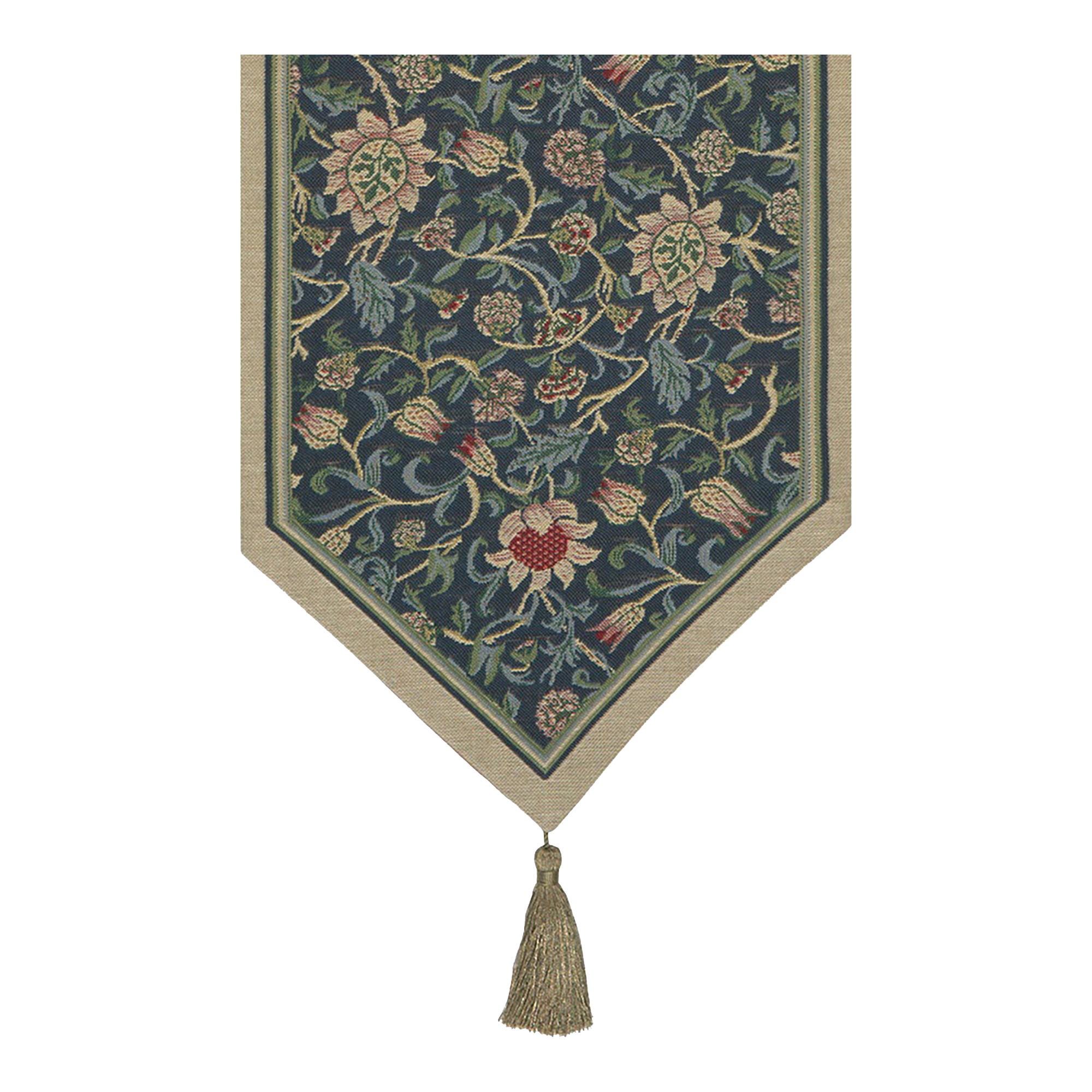 Add timeless elegance to your dining or living space with the Fleur De Morris Blue Belgian Tapestry Runner Table. Inspired by William Morrisโs iconic floral motifs, this exquisitely woven textile brings sophistication to any table. Featuring blooming flowers and swirling vines against a rich blue background, this runner is a true work of art.