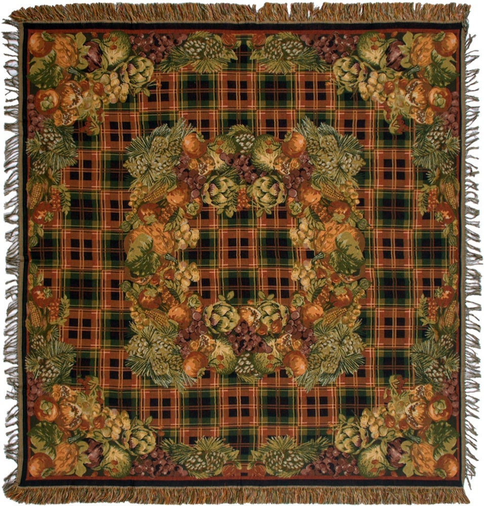 Woven in Belgium using traditional techniques, the throw showcases deep greens, rustic oranges, golden browns, and natural textures that echo the bounty of the season. Whether draped over your sofa, folded at the foot of the bed, or hung as wall art, this piece adds an inviting and festive atmosphere to any spaceโperfect for Thanksgiving gatherings or everyday autumn coziness.