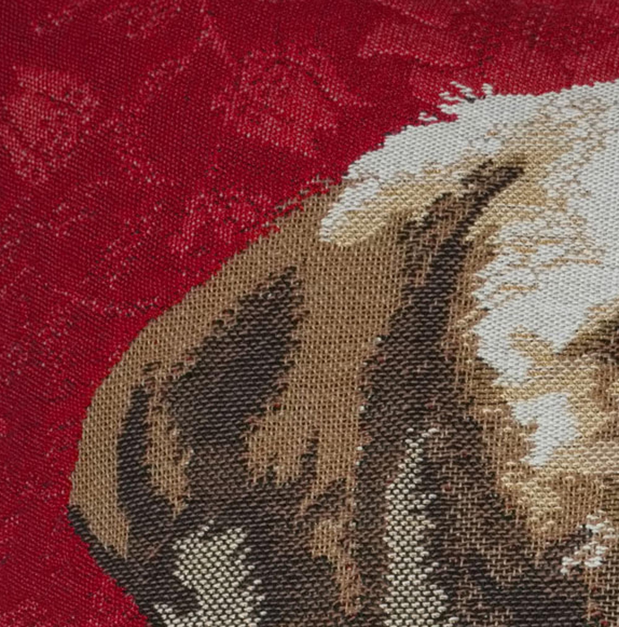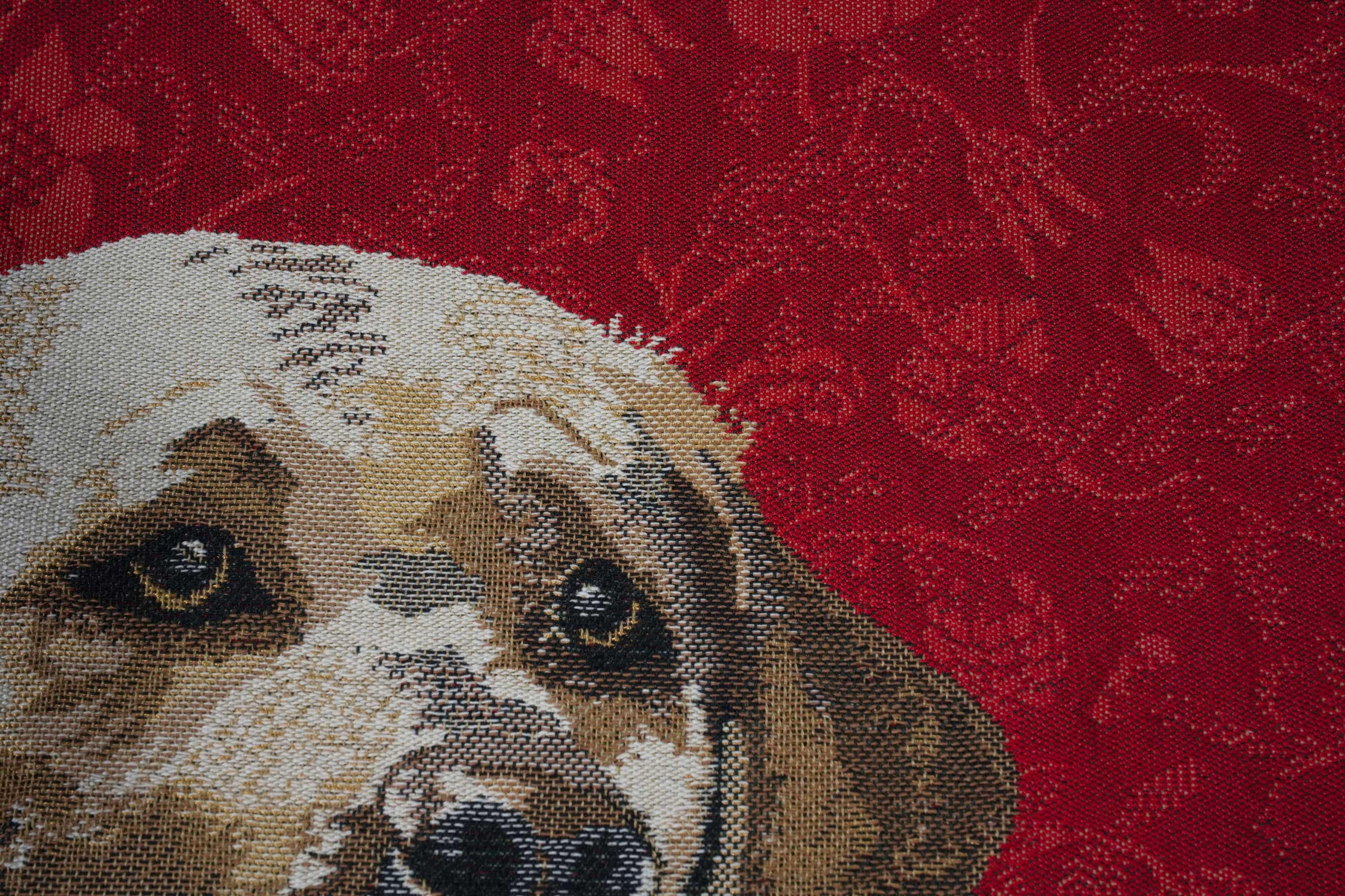 This cushion cover not only appeals to dog lovers but also to those with an appreciation for fine craftsmanship. Its tapestry texture and thoughtful design make it a statement piece, seamlessly merging practicality with artistic expression.