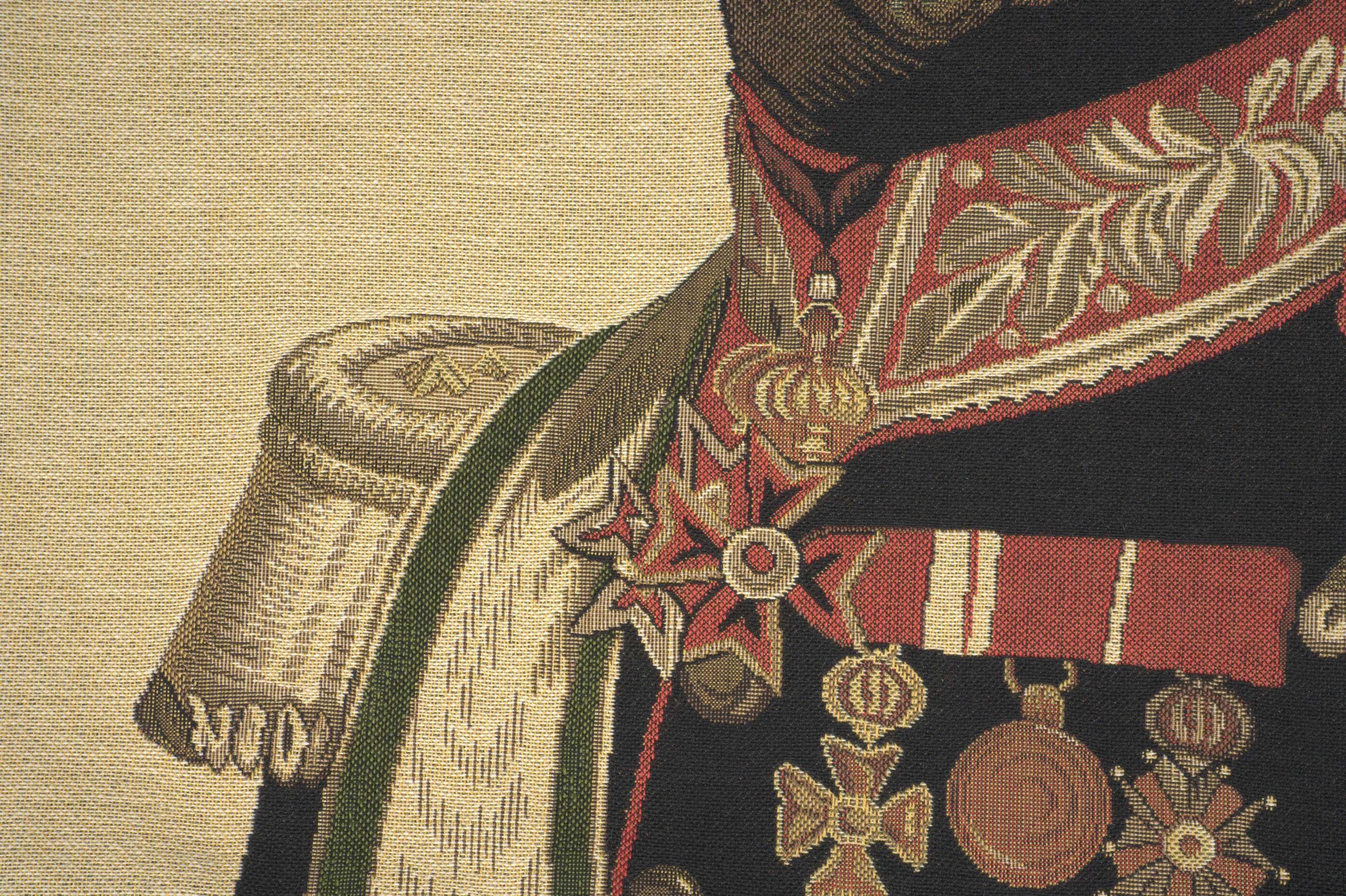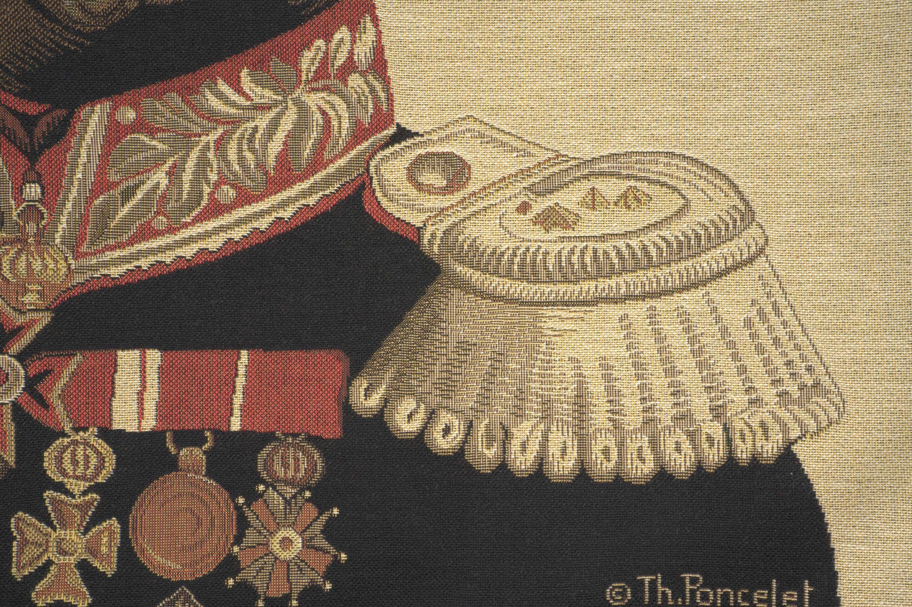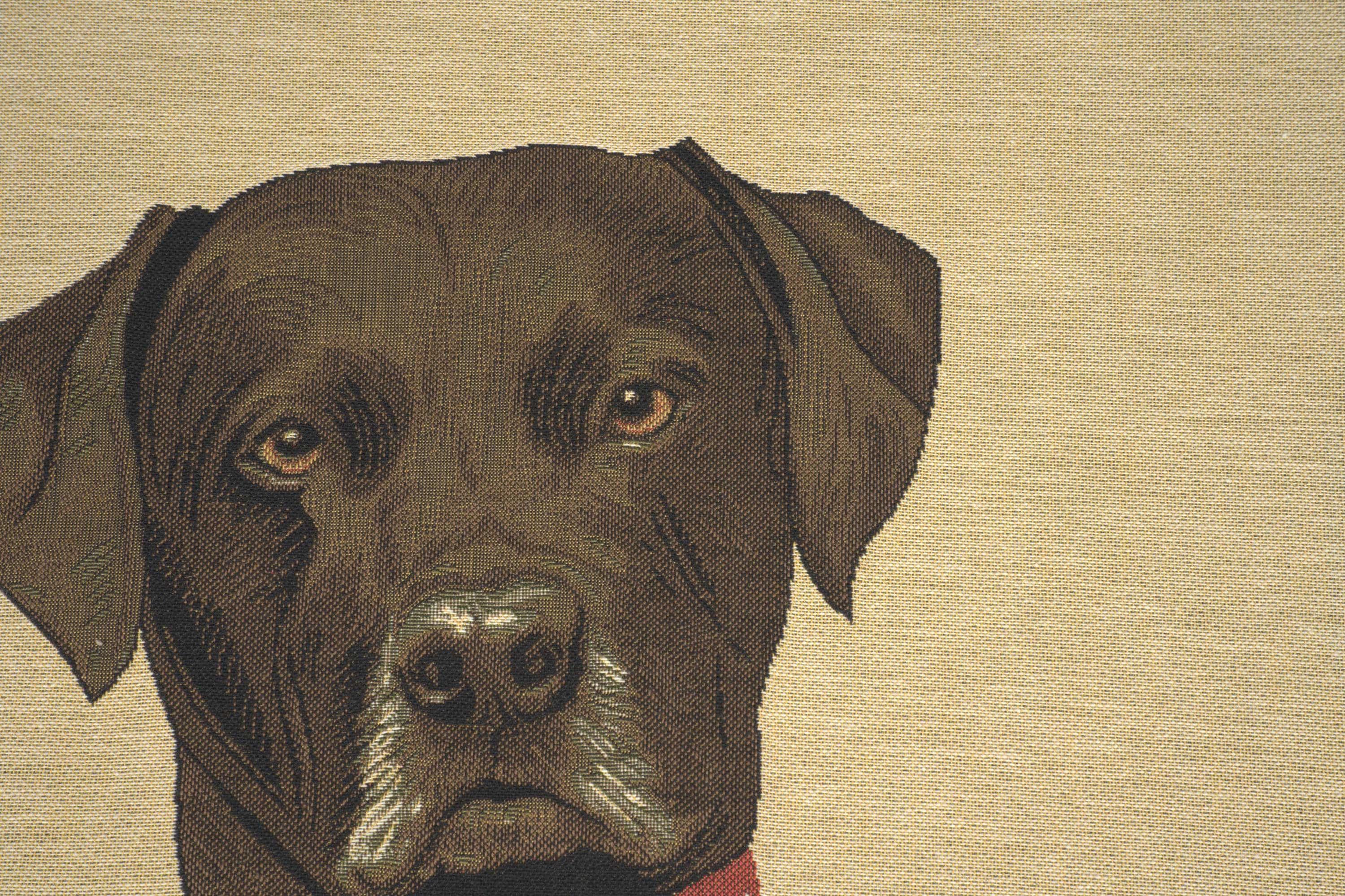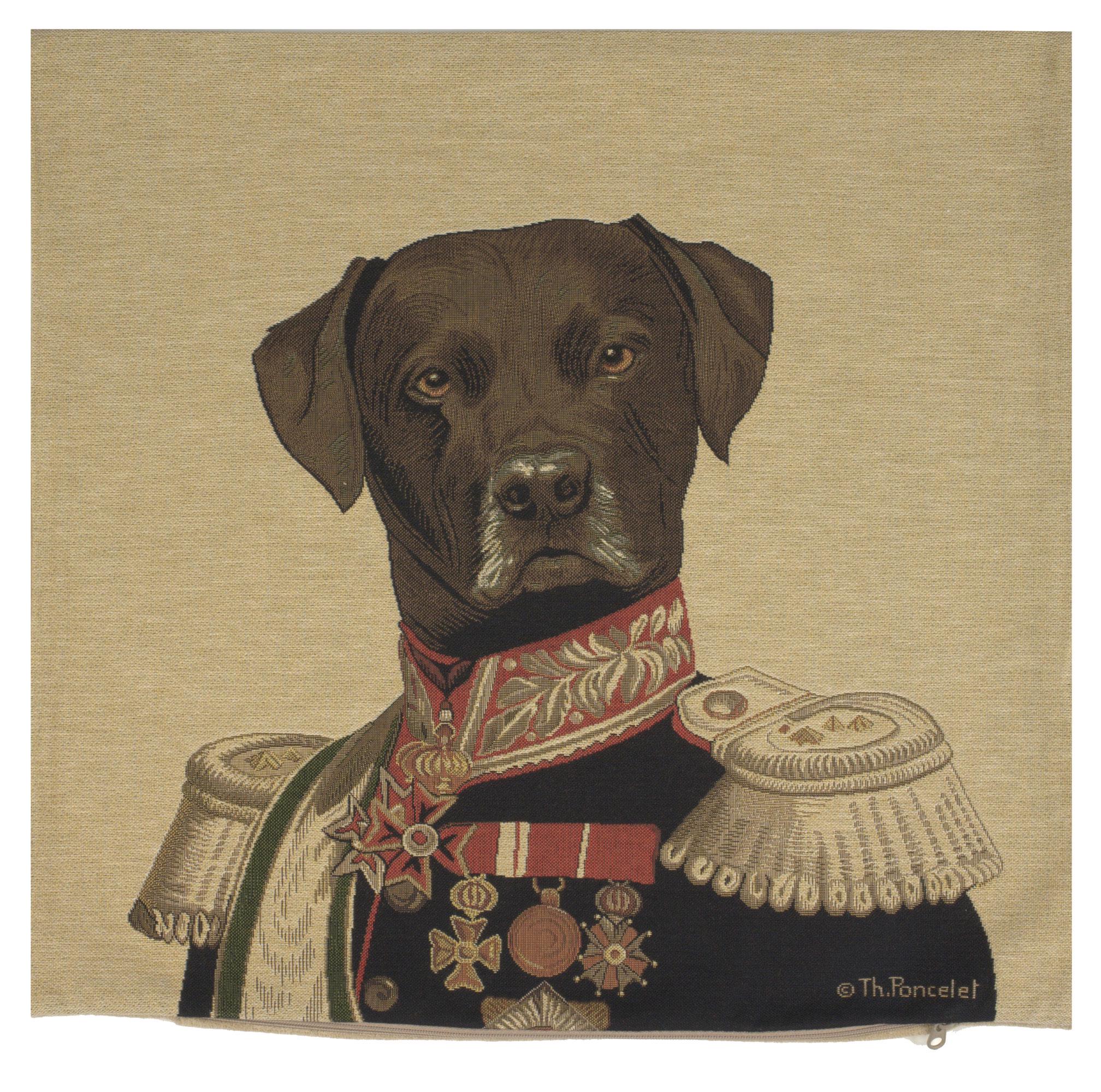 Enhance your home decor with this stunning Labrador tapestry pillow covers, expertly jacquard woven in Belgium. This decorative pillow cover features a chocolate Labrador retriever dressed in an elegant military-style uniform, complete with medals and epaulettes, adding a regal touch to your living space. The design, inspired by Thierry Poncelet, masterfully merges classic portraiture with animal artistry, making it a unique statement piece for any sofa, chair, or bedroom decor.