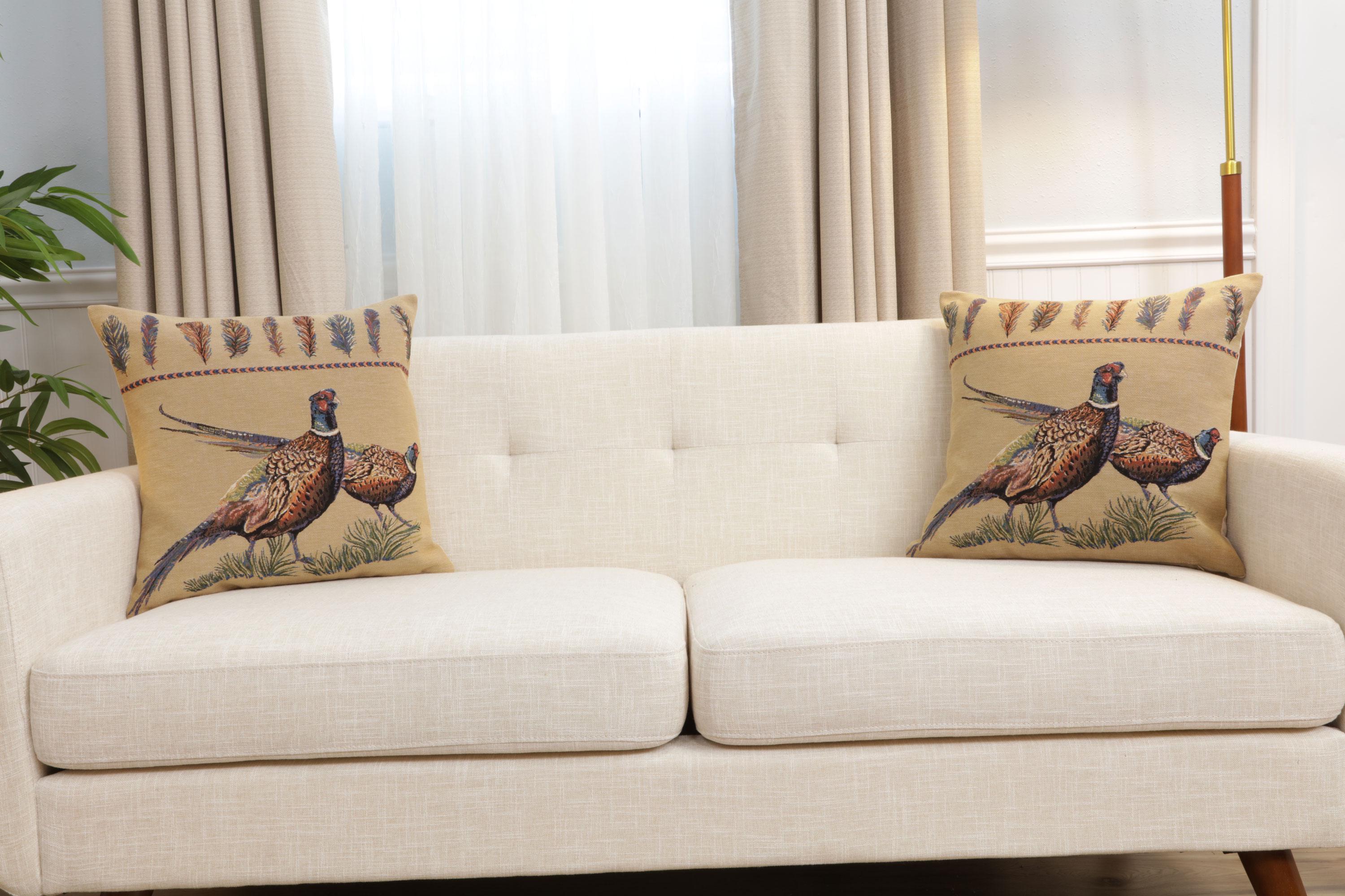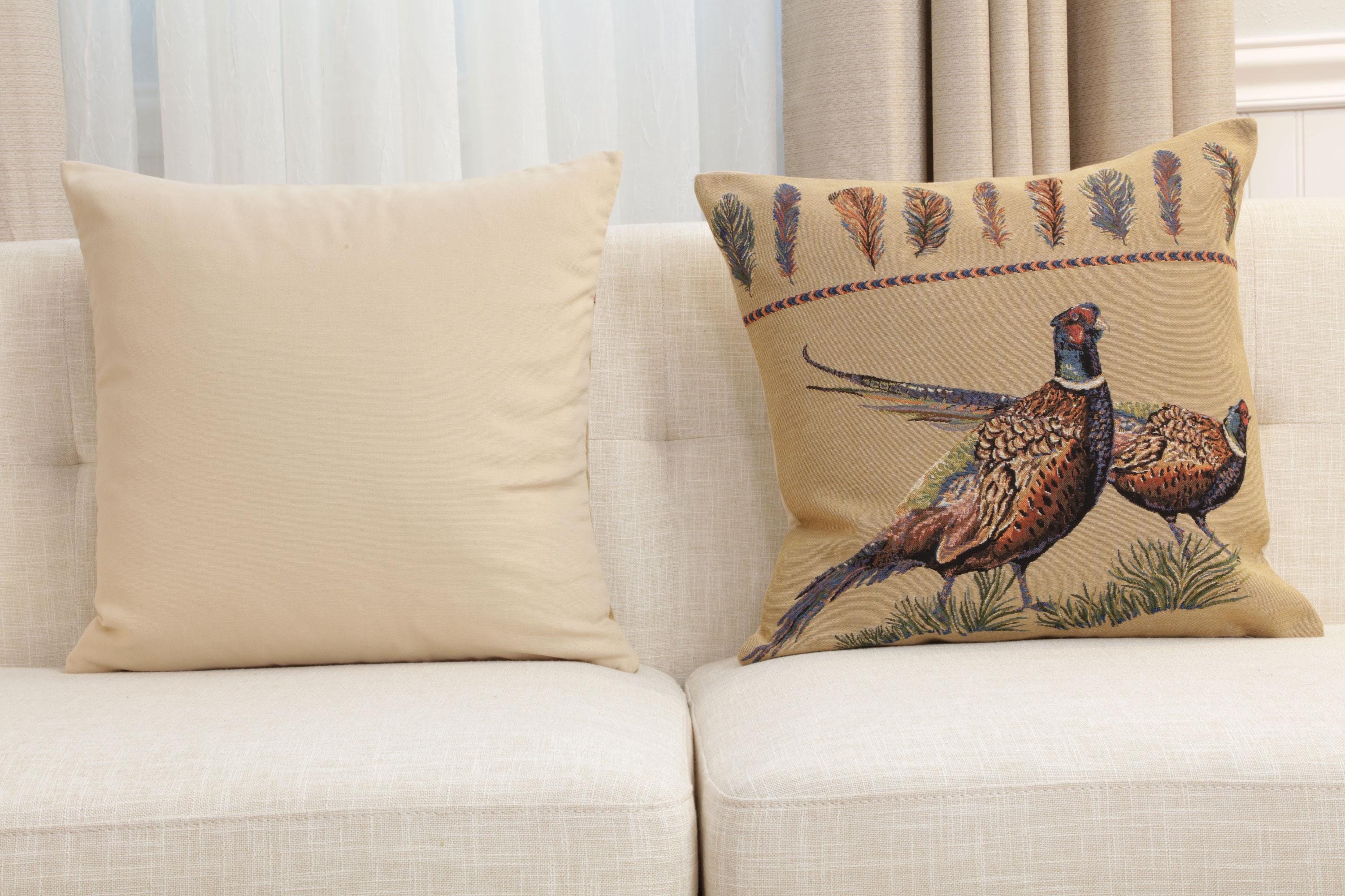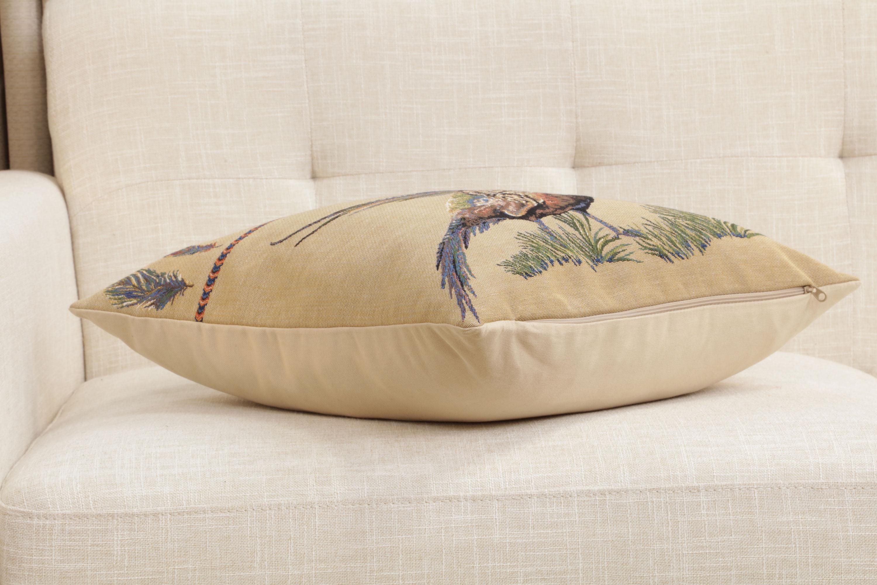 ๐๐๐ข๐ง๐ ๐๐ข๐ ๐ก๐ญ Belgian Cushion Cover is a must-have for anyone who appreciates unique home decor. Measuring ๐๐๐ฑ๐๐ ๐ข๐ง๐๐ก๐๐ฌ, this cushion cover is woven in Belgium, demonstrating a high level of craftsmanship. It features a beautiful design of pheasants facing right, which adds a touch of medieval charm, making it ideal as a decorative accent for your sofa, bed, or chair. This high-quality pillow cover can easily fit an 18x18-inch insert. Whether you're looking for a vintage touch, a special Christmas pillow, or want to refresh your throw pillow collection, this cover is perfect. The tapestry design adds a level of elegance that is hard to match. Not only does it make a fantastic addition to your own home, it also makes for a thoughtful gift for housewarmings, birthdays, and other special occasions. It is easy to clean, durable, and designed to withstand everyday use. Please note that the listing is for the cushion cover only and doesn't include the cushion insert.