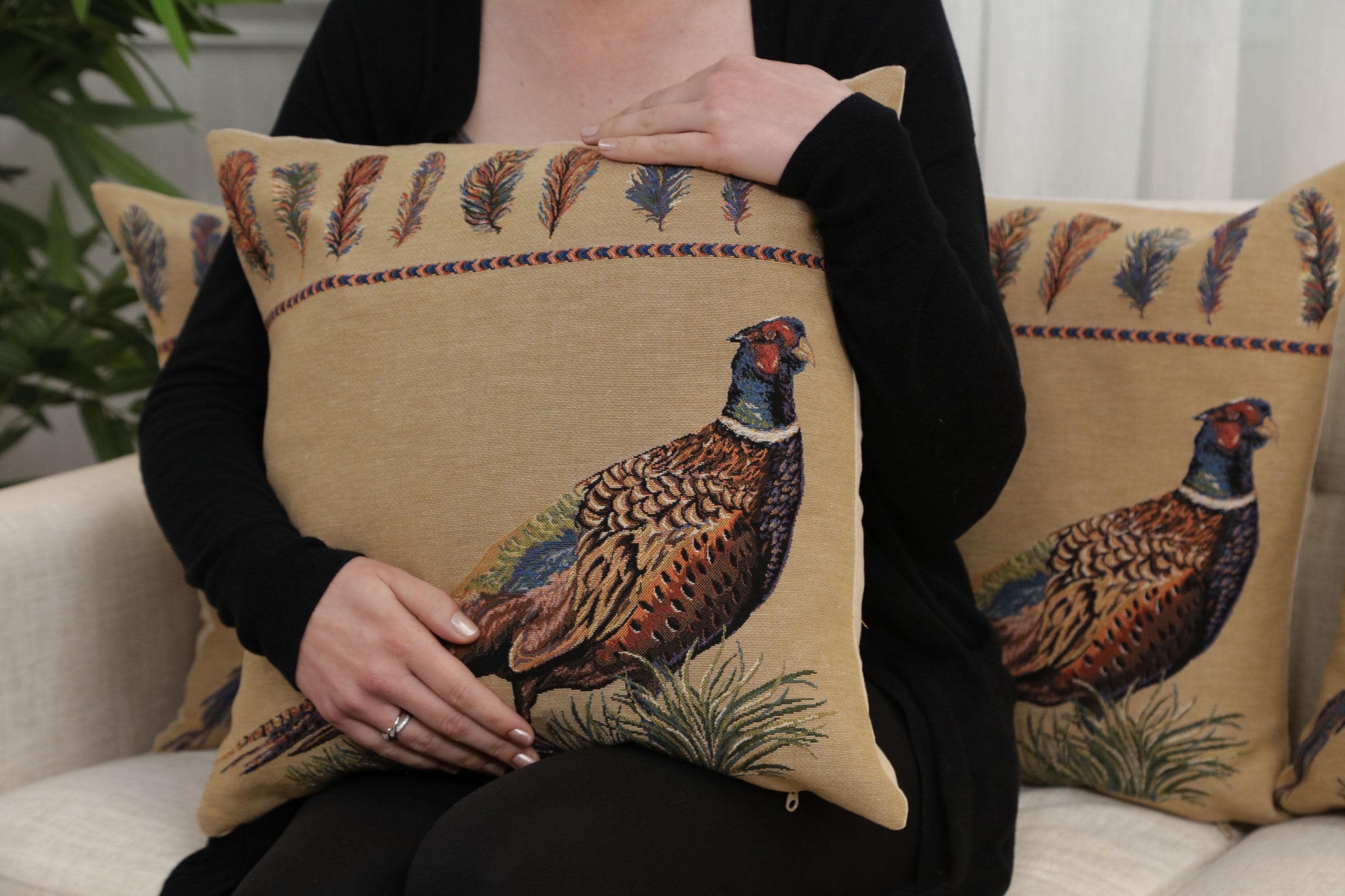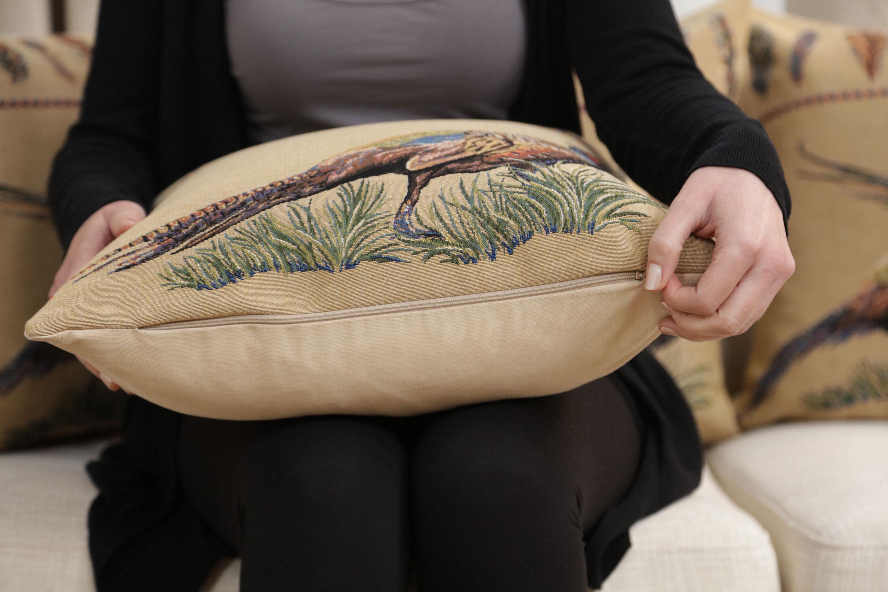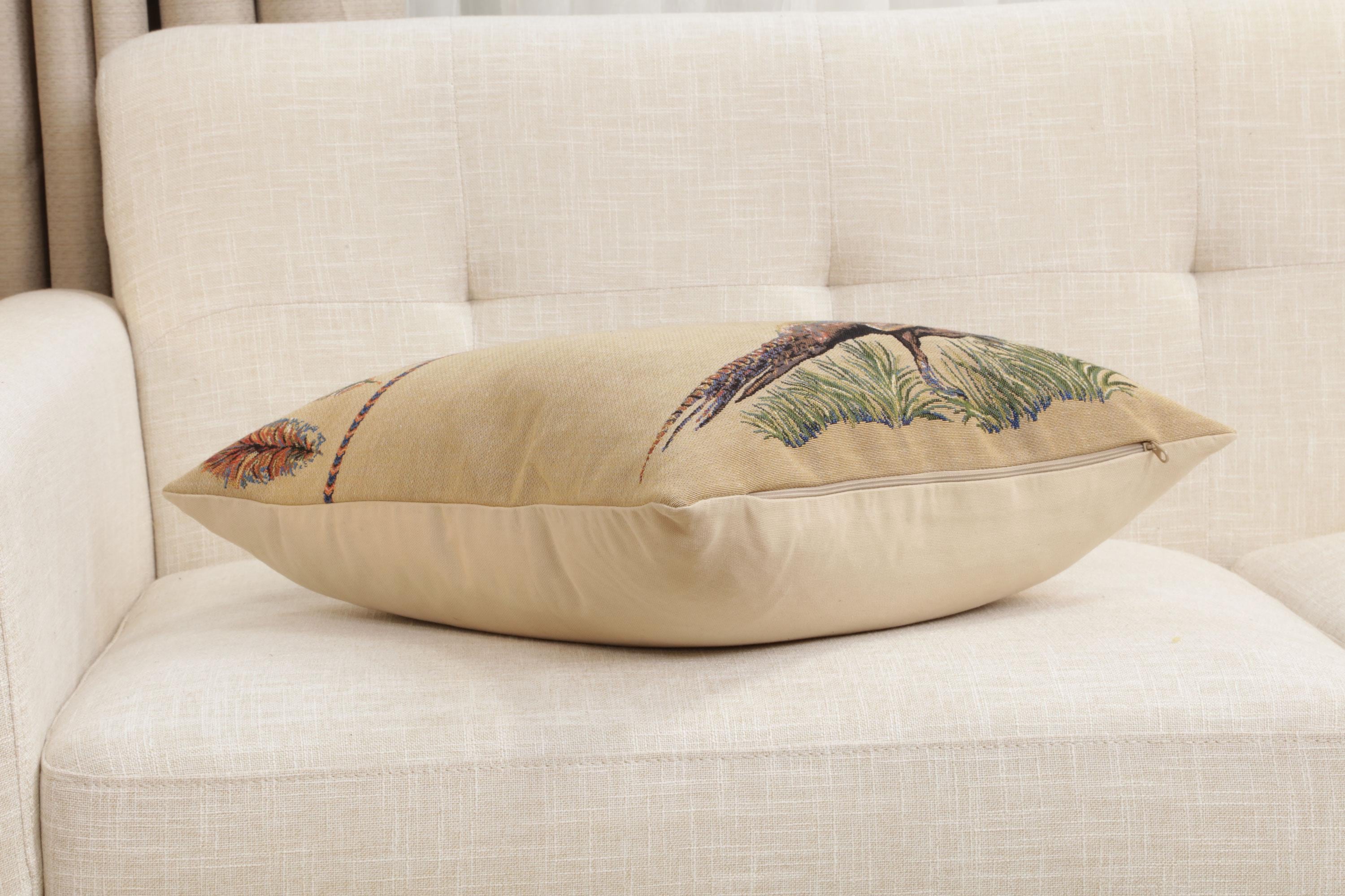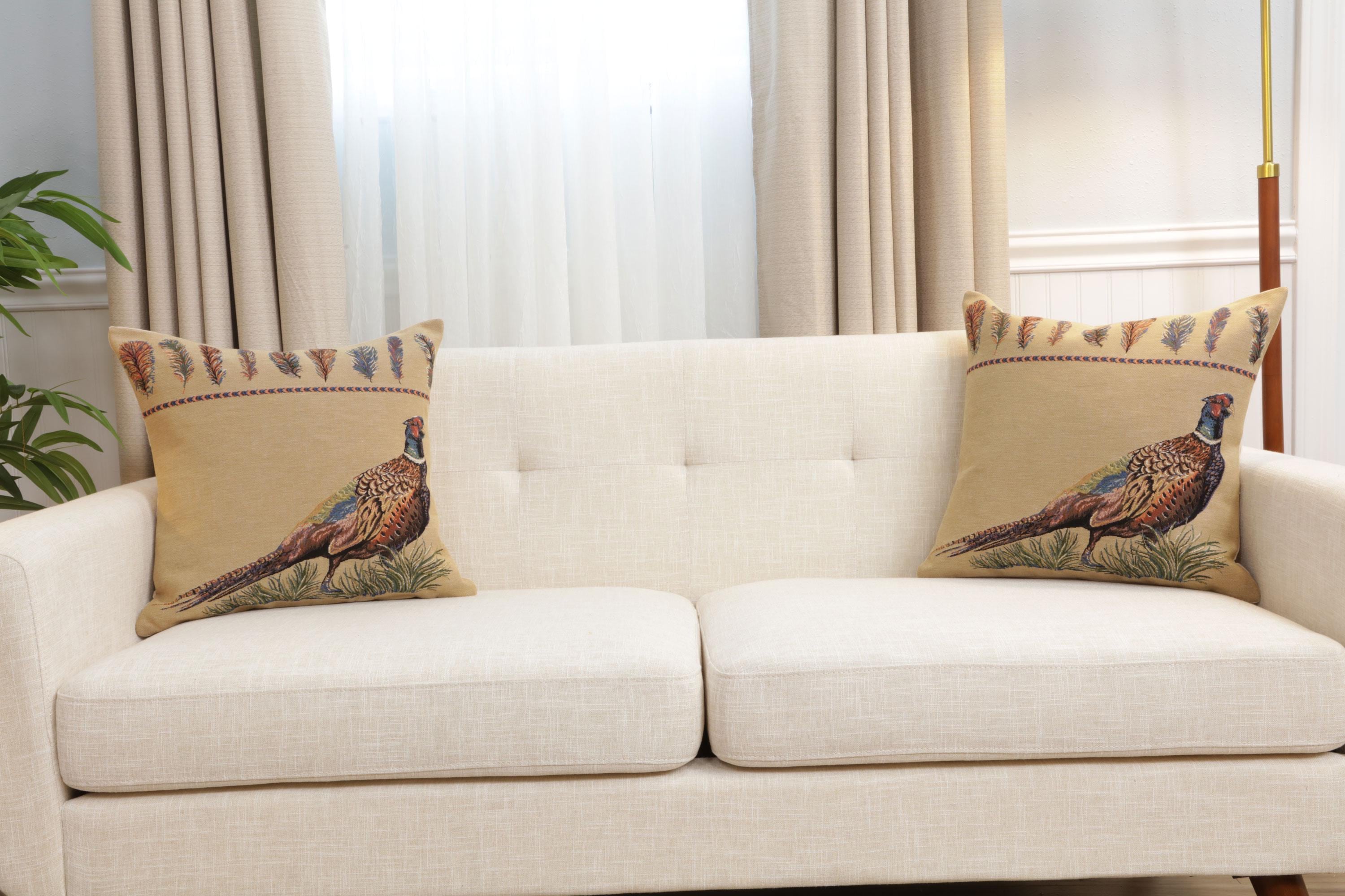 Celebrate elegance and sophistication with the Pheasant Facing Right Belgian throw pillows cases. Woven in Belgium, this decorative pillow covers features a classic pheasant motif symbolizing nobility and refinement. This throw pillow cover pairs beautifully with neutral or colorful decor, making it a must-have for any home.