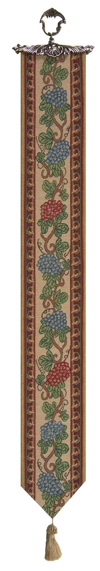 The Wine Merchants Belgian Tapestry Bell Pull is a condensed version of the Vendages wall tapestry, celebrating the medieval art of winemaking. Featuring clusters of grapes elegantly arranged, this woven wall hanging is perfect for wine lovers and those who appreciate vintage-inspired dรฉcor.