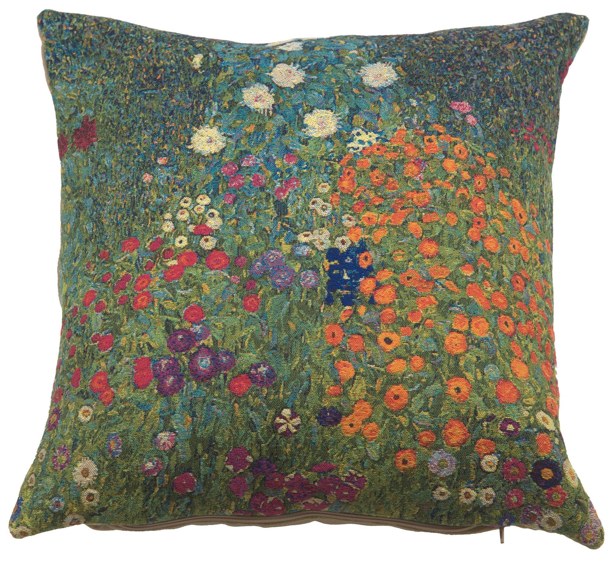 Immerse your living space in classic art with our "Flower Garden by Klimt" Belgian Cushion Cover. Measuring 18x18 inches, this premium cover features a reproduction of Gustav Klimt's renowned painting woven exquisitely in Belgium. The flora-filled design and golden tones will infuse vibrancy and elegance into any setting. Its luxurious texture and rich colors will elevate your couch, bed or favorite chair, making it a perfect addition for art enthusiasts and lovers of vintage aesthetic. This decorative pillow cover is not only a beautiful home accent but also a wonderful gift for Klimt fans. Note that it's a cover only; pillow insert is not included.