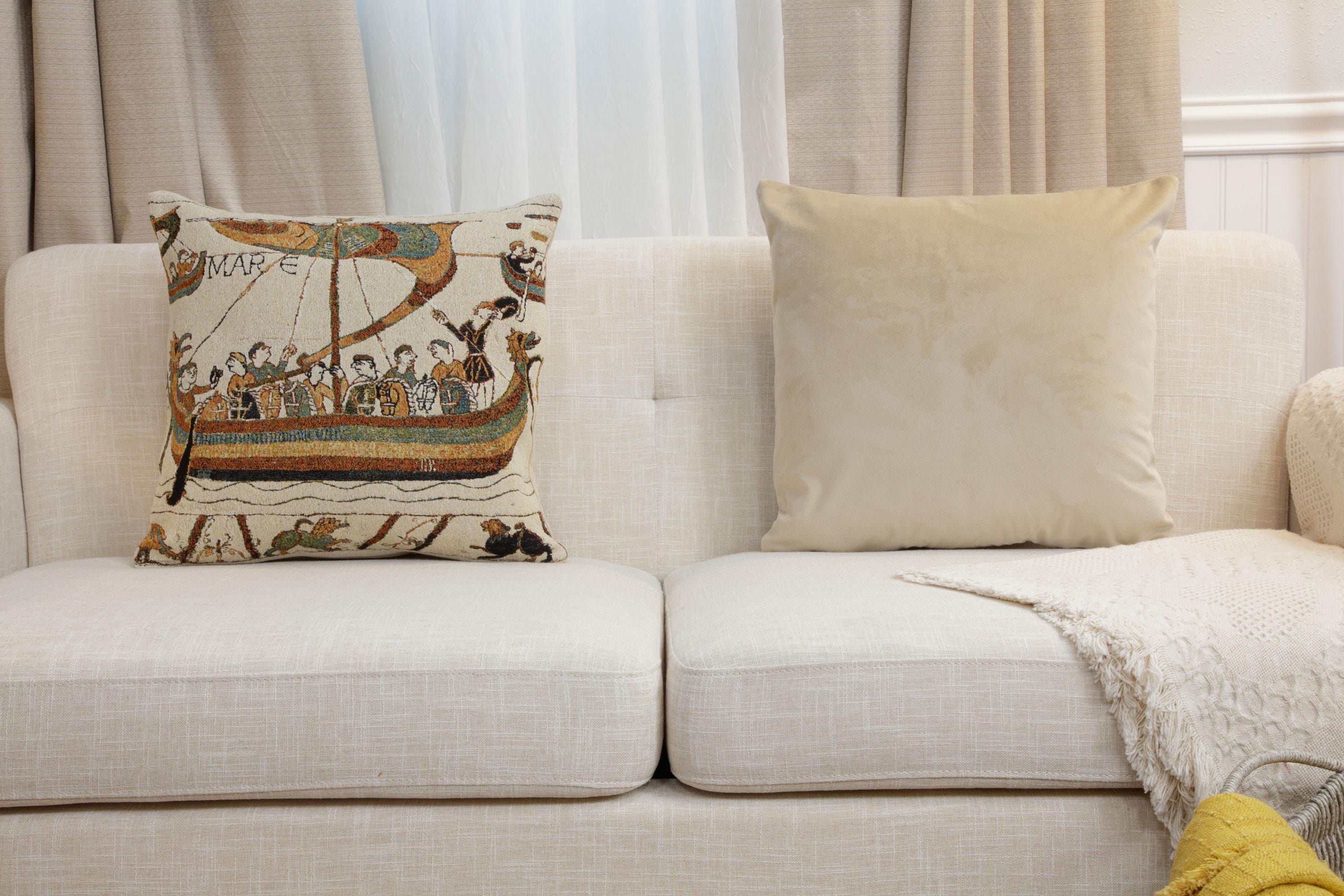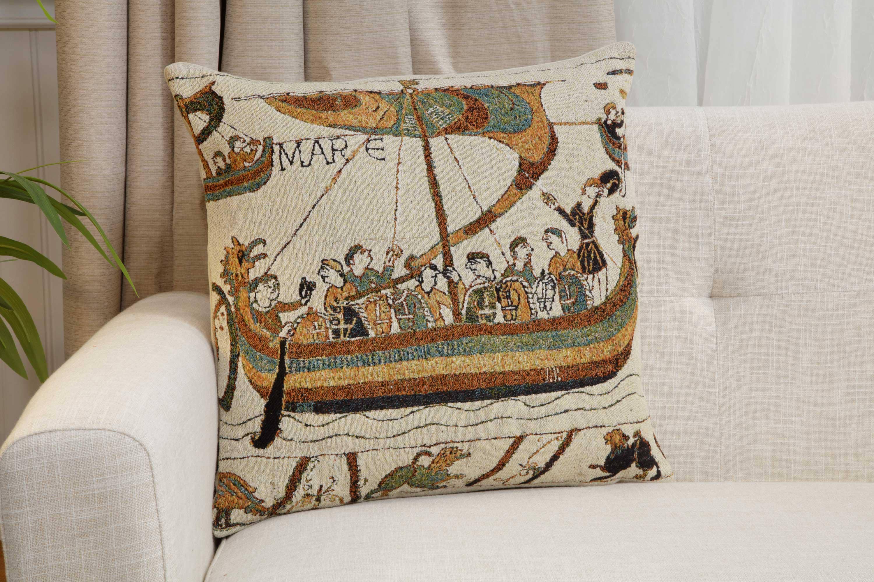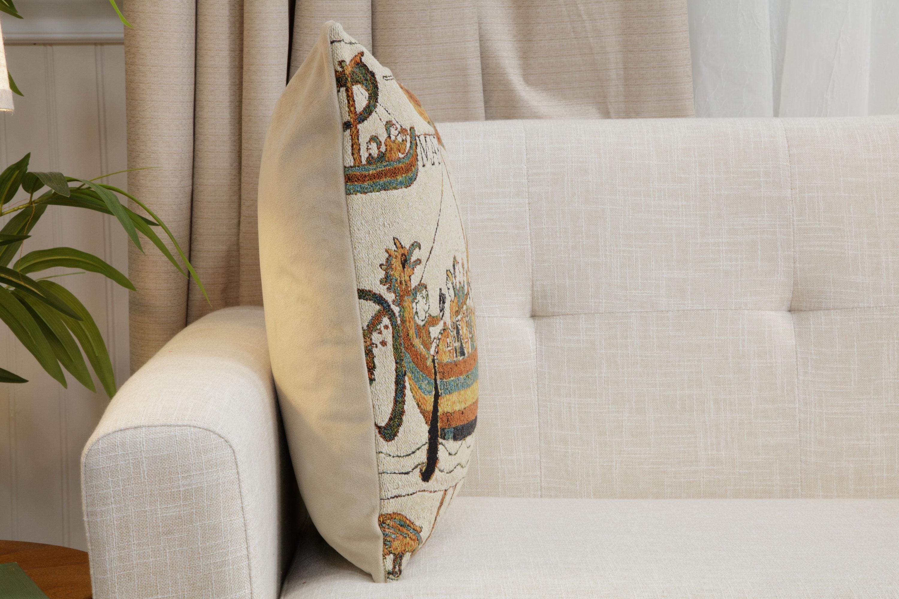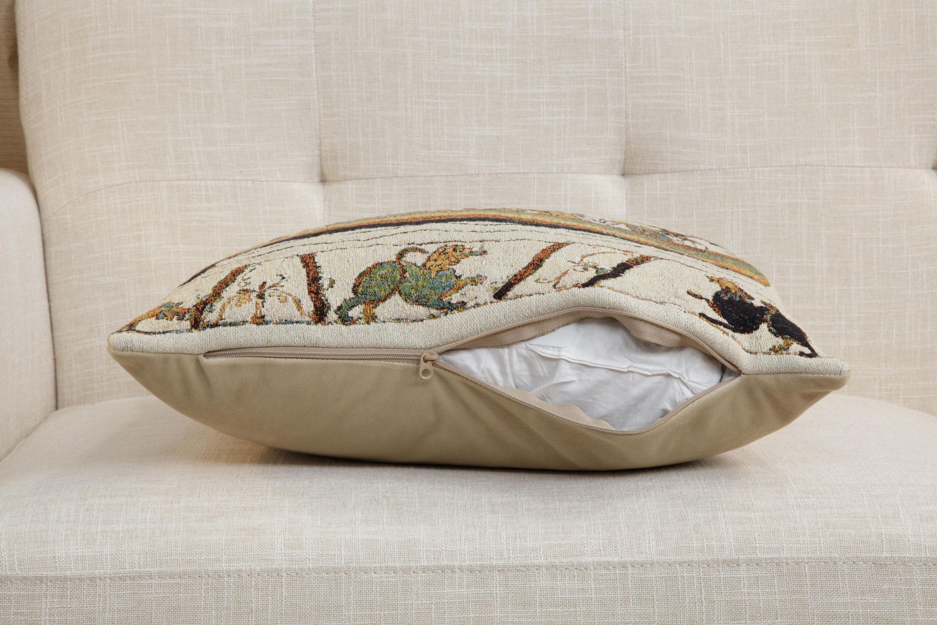 ๐ก๐ฎ๐๐ถ๐ด๐ถ๐ผ ๐ ๐ฎ๐ฟ๐ฒ ๐๐๐๐ต๐ถ๐ผ๐ป ๐๐ผ๐๐ฒ๐ฟ, a finely ๐ท๐ฎ๐ฐ๐พ๐๐ฎ๐ฟ๐ฑ ๐๐ผ๐๐ฒ๐ป ๐ฐ๐๐๐ต๐ถ๐ผ๐ป ๐ฐ๐ฎ๐๐ฒ inspired by the legendary Bayeux Tapestry. Woven in Belgium by skilled artisans, this piece captures the timeless charm of medieval design while offering durability and elegance for your modern home.