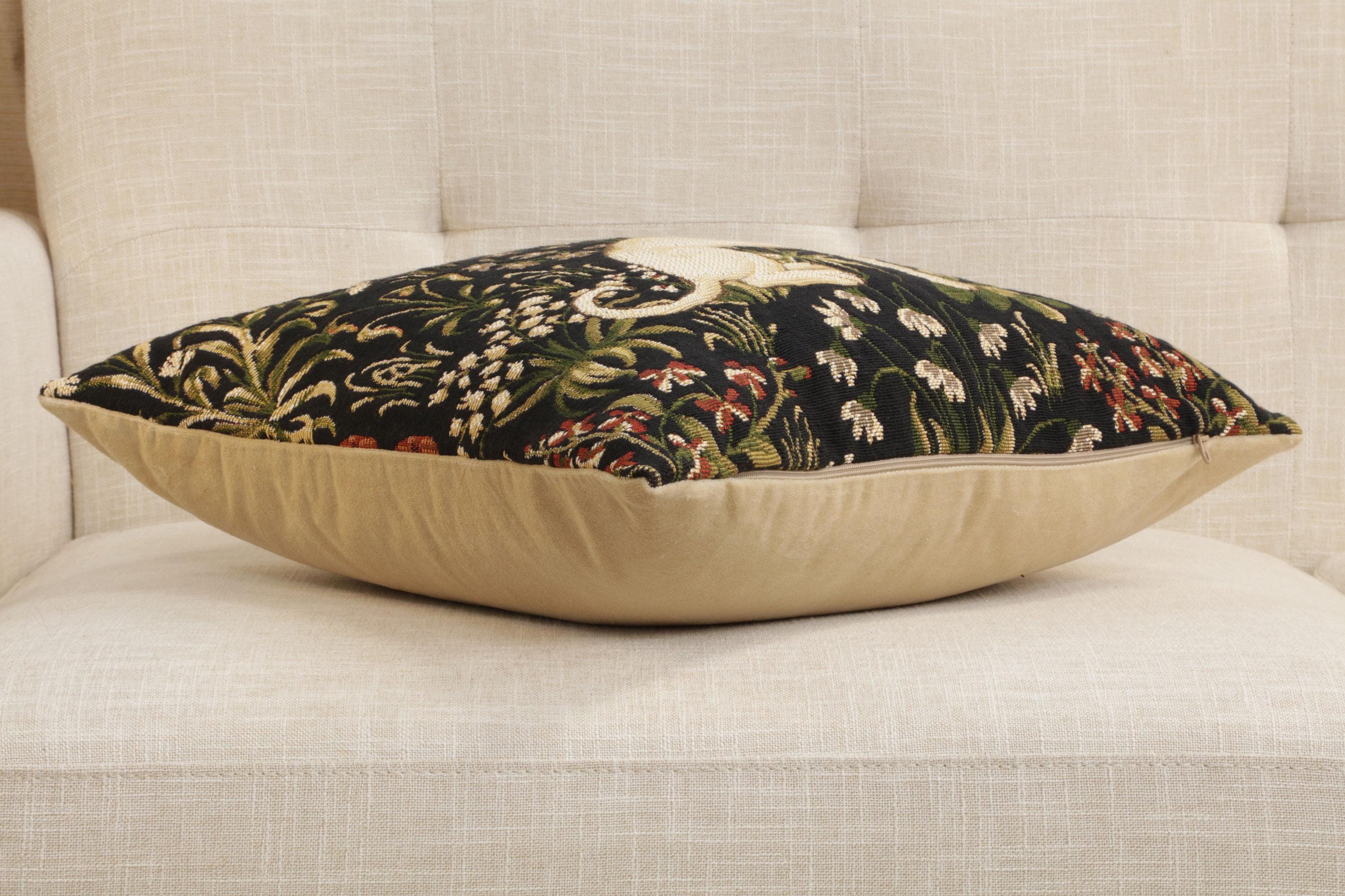 Crafted with superior jacquard weaving techniques, this cushion cover blends durability with artistic beauty. The tapestryโs soft texture and detailed imagery make it both a decorative statement and a cozy accent piece. Ideal for animal lovers and admirers of medieval art alike, itโs a refined addition that complements any couch, armchair, or reading nook.