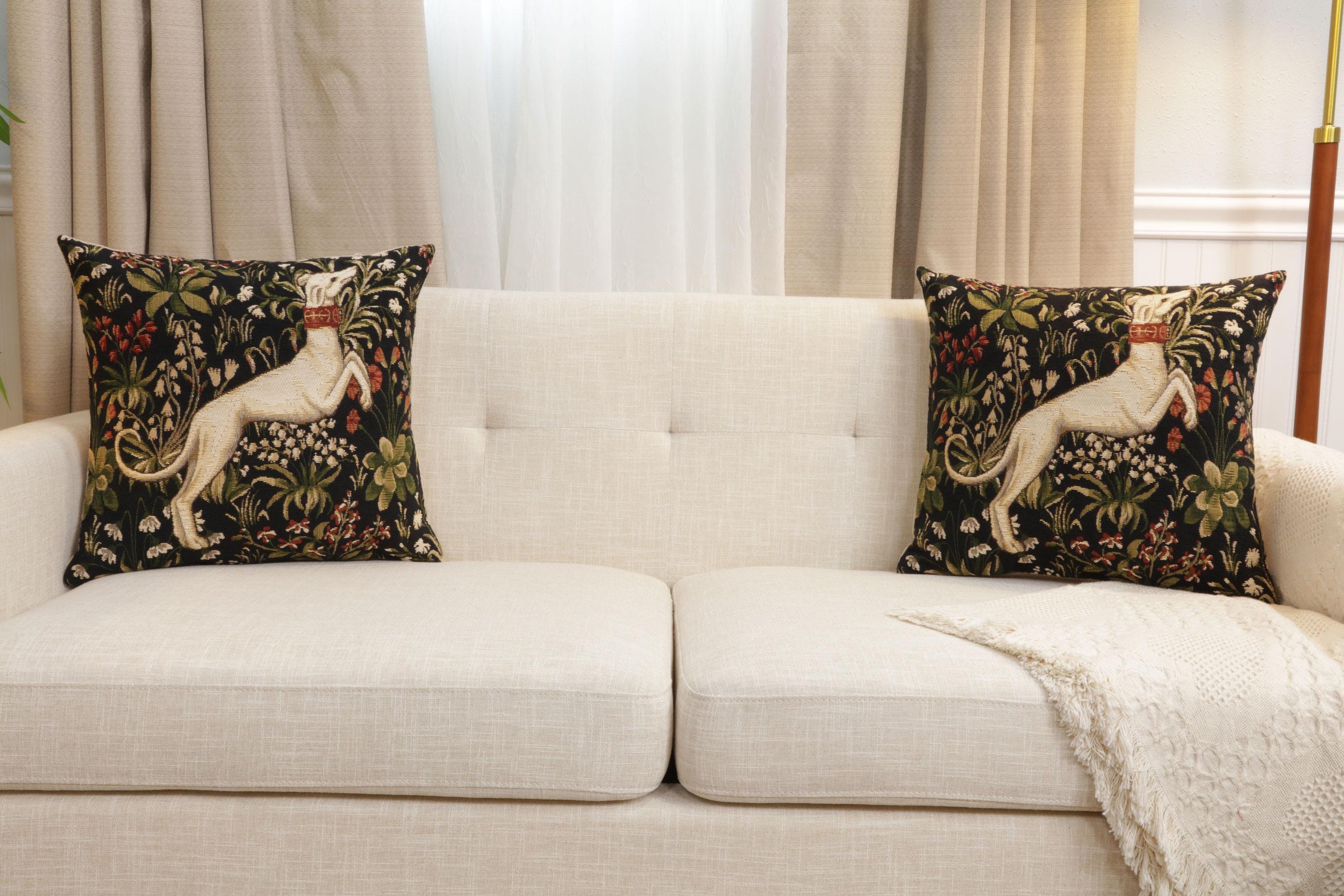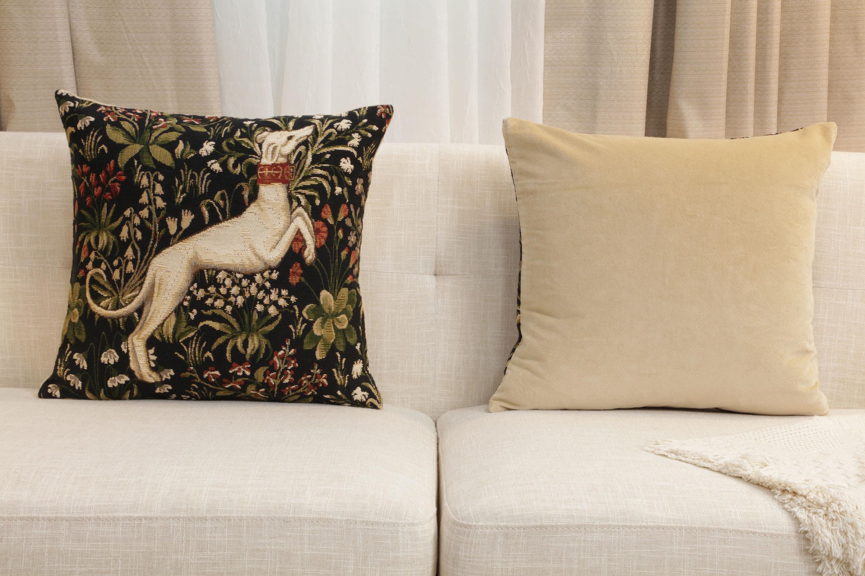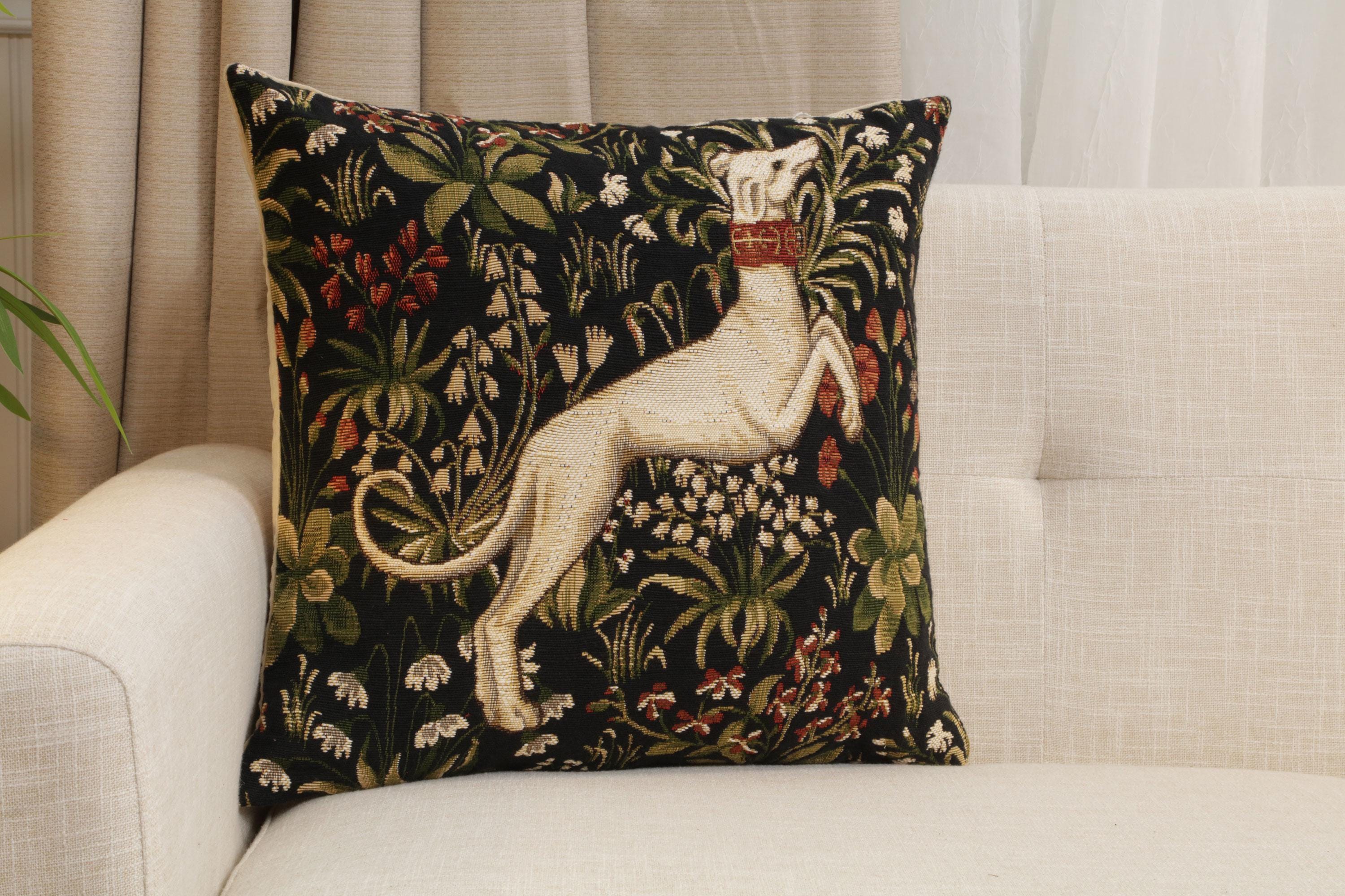 Bring timeless artistry into your home with the Medieval Leaping Hound Belgian Cushion Cover, a stunning piece inspired by historic European tapestry craftsmanship. Woven in Belgium using premium jacquard techniques, it beautifully captures a classic leaping hound motif โ symbolizing grace, nobility, and vitality. The intricate details and soft woven texture make this cushion cover a refined accent piece for your couch, sofa, or reading chair.