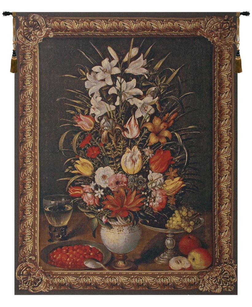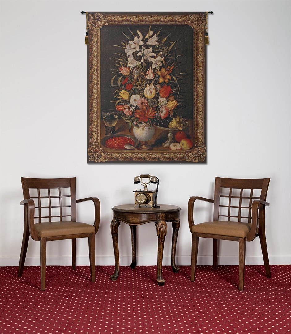 Antique Breughel is a Belgian wall tapestry. The original still life was painted by Jan Breughel (1568-1625) and is known as Flowers in a Vase. A fine accent to your home décor.
