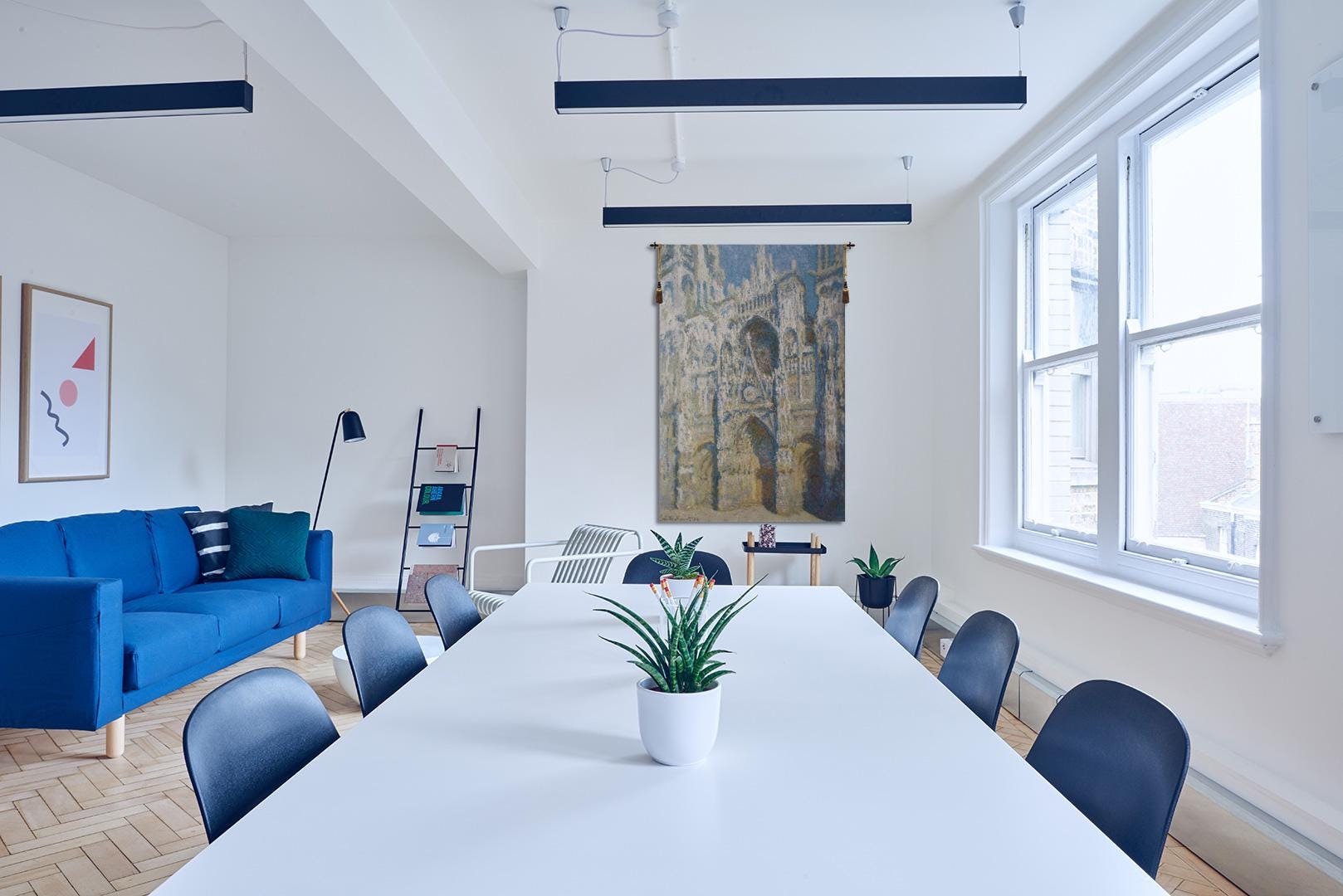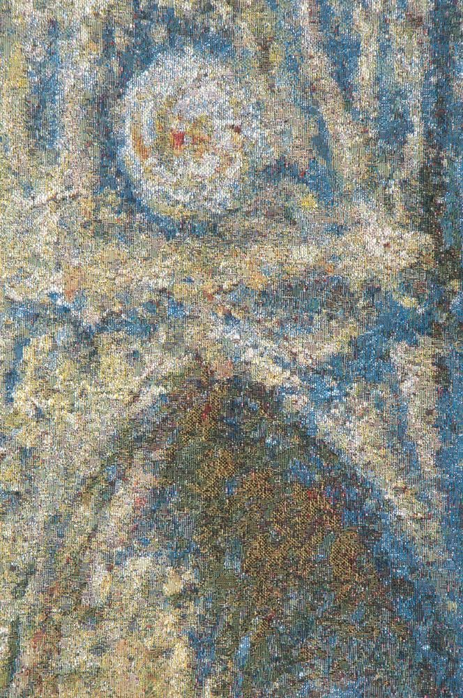 Claude Monet is a Belgian made jacquard wall tapestry. It is a reproduction of one of the Cathedral of Rouen paintings done by the master artist. Claude Monet painted a series of paintings of the Rouen Cathedral. The paintings mostly have one viewpoint but are however painted at different times of the day and at different weather circumstances. Here we see the early morning version.