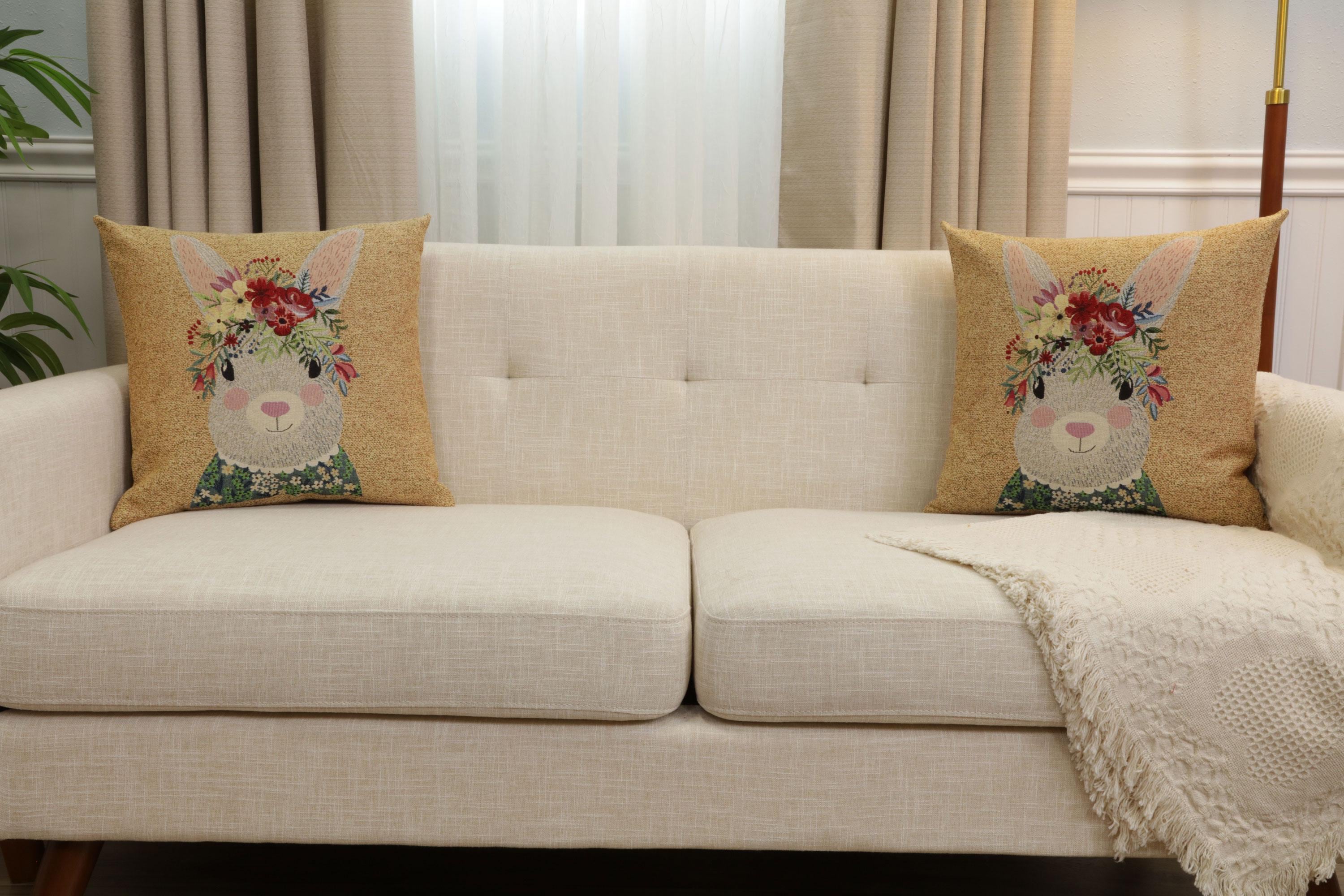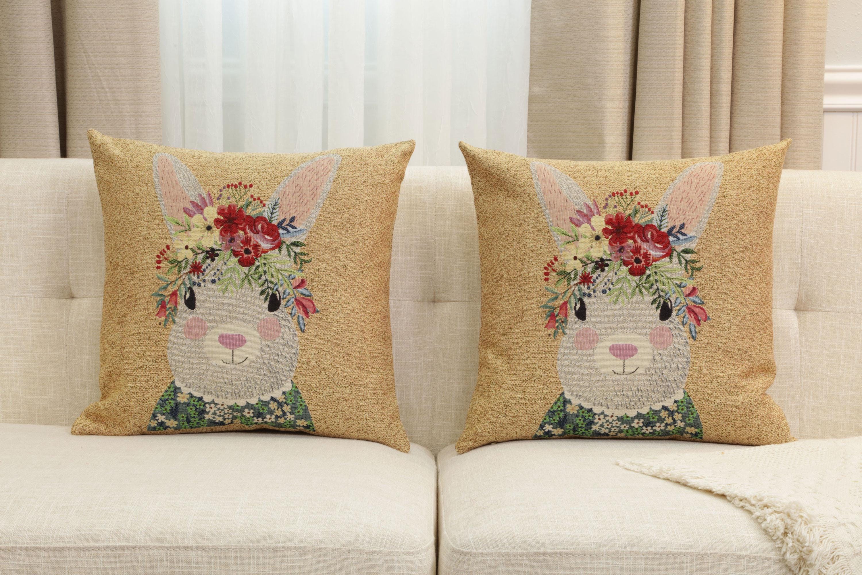 Katie the Rabbit Tapestry Cushion Cover – Decorative Pillow Case for Couch, Sofa & Home Decor
