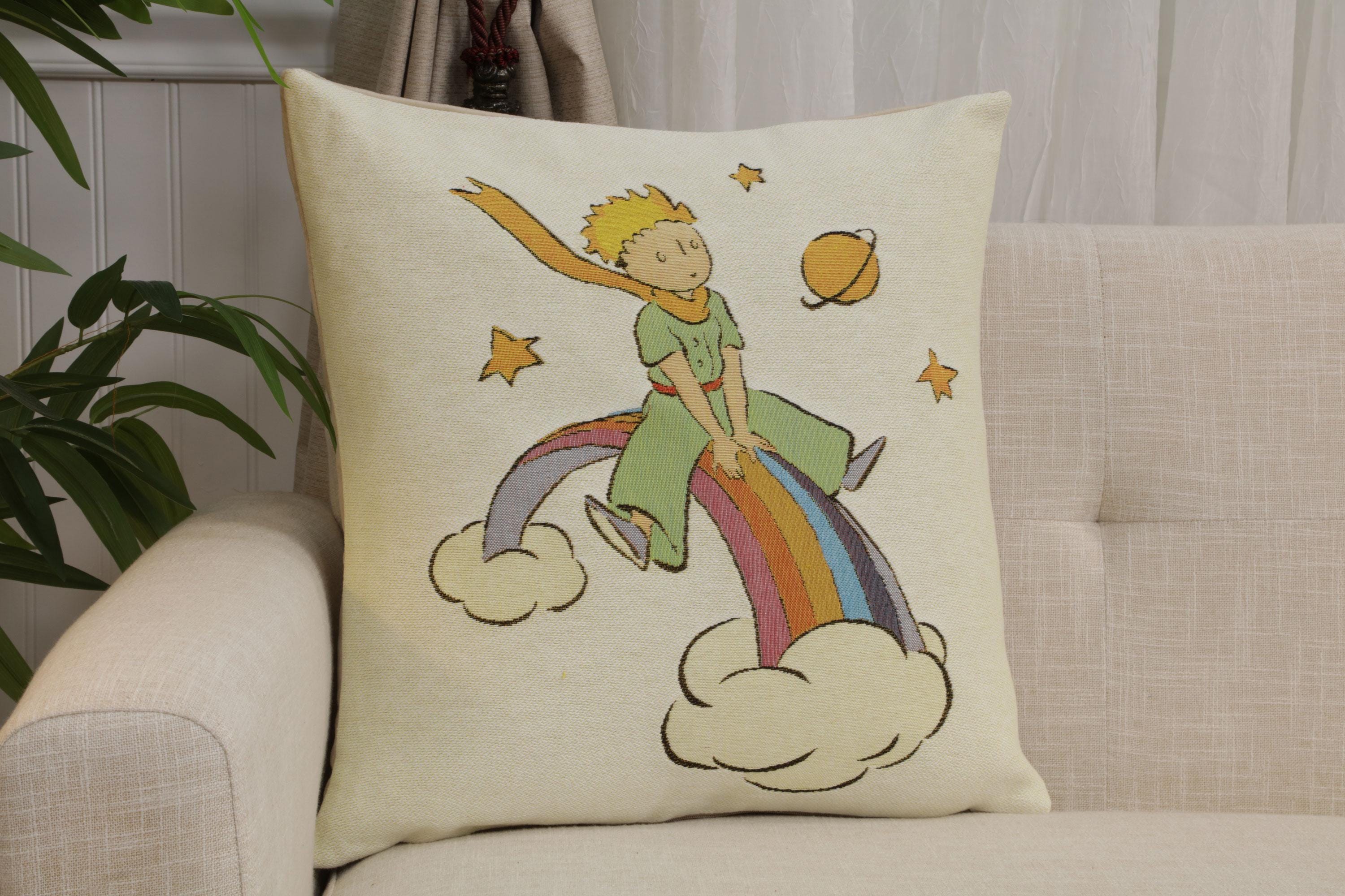 Add poetic charm and whimsical elegance to your space with the Little Prince Rainbow Tapestry Cushion Cover, beautifully woven in Belgian jacquard style. Inspired by the timeless tale of The Little Prince, this artistic pillow cover brings soft color, storytelling, and refined texture to sofas, beds, or reading corners.
