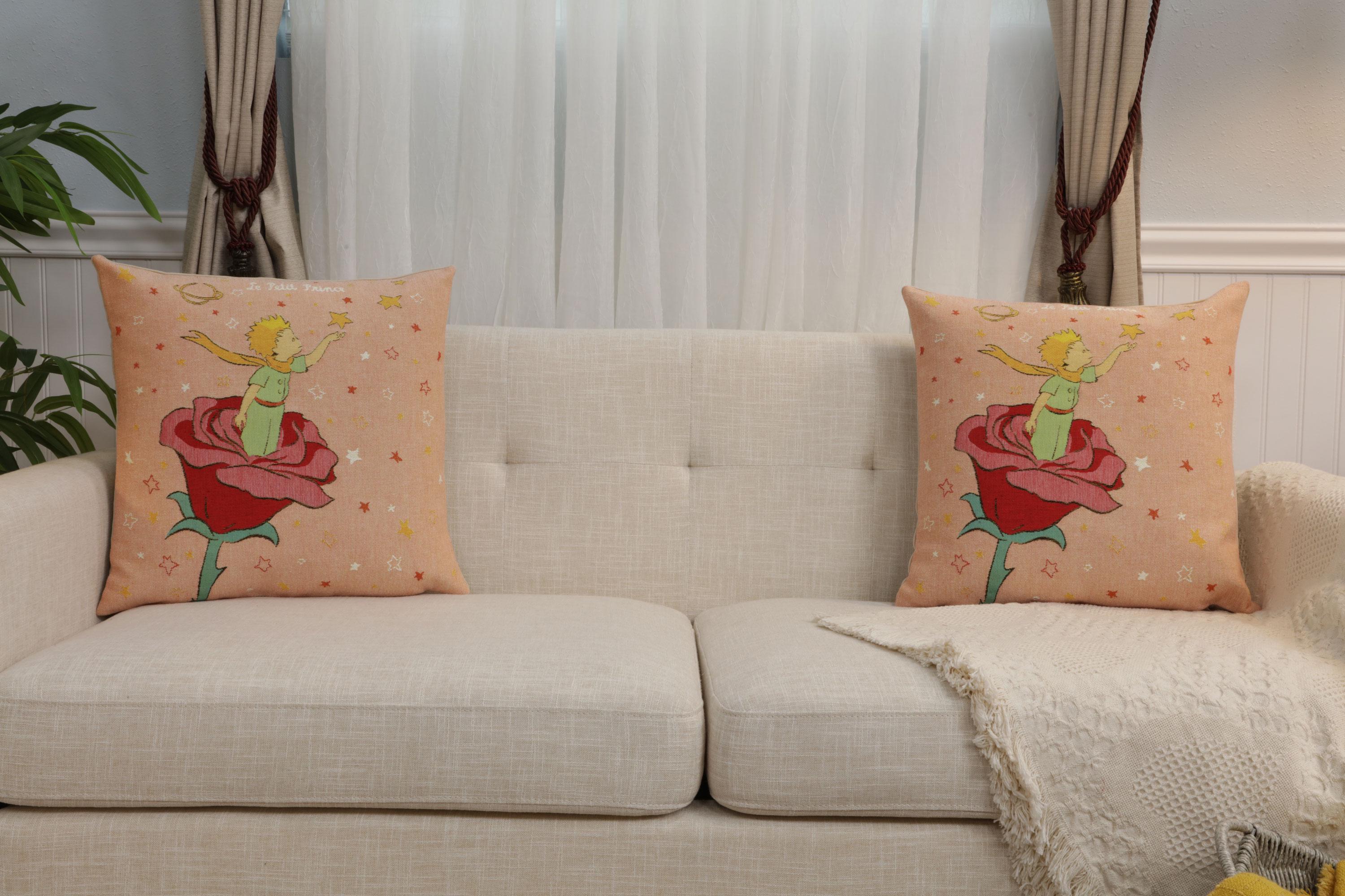 Bring timeless romance and storytelling charm into your space with the Little Prince Standing with Rose Tapestry Cushion Cover, exquisitely crafted in Belgian jacquard weave. Featuring the iconic Little Prince beside his beloved rose, this pillow case adds warmth, emotion, and literary elegance to sofas, beds, and reading spaces.