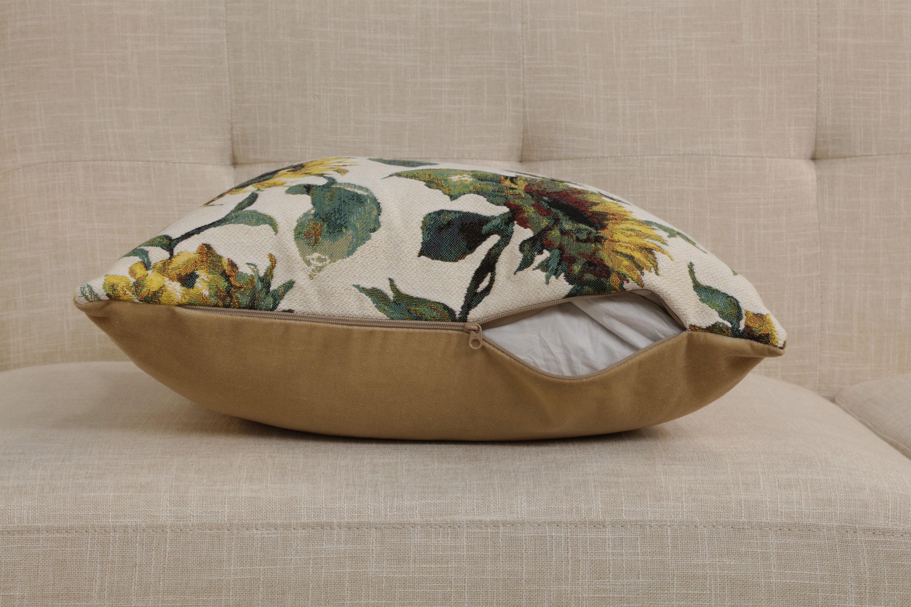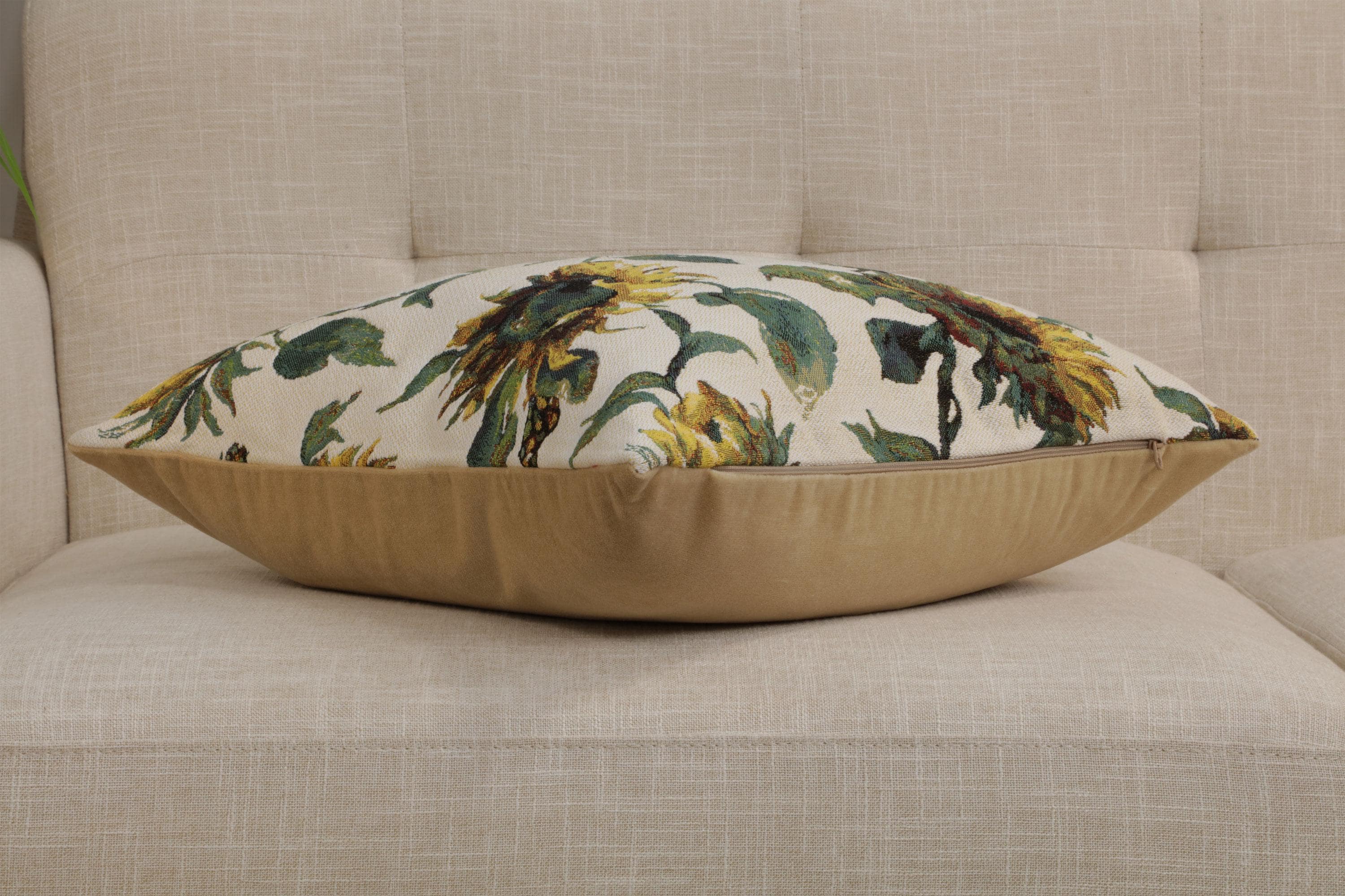Add sunny warmth and artistic elegance to your home with the Tournesols Sunflower Belgian Tapestry Large Cushion Cover. Featuring vibrant sunflowers woven in premium Belgian jacquard, this decorative pillow cover brightens sofas, chairs, or beds while adding a sophisticated touch to any interior.