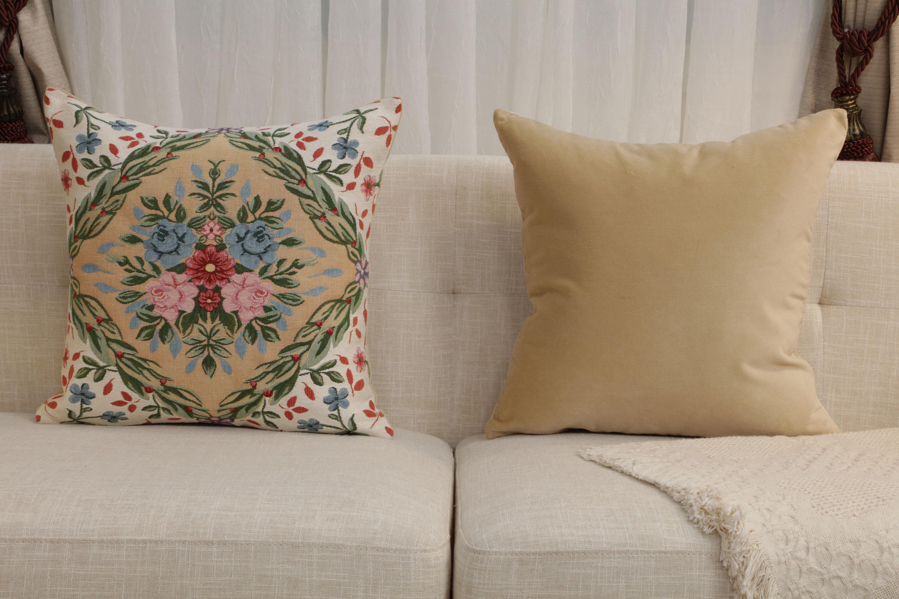 Add vintage European charm to your living space with the Savonnerie Belgian Tapestry Cushion Cover, expertly woven in Belgian jacquard. Featuring traditional Savonnerie patterns, this large decorative pillow case brings artistic detail and timeless elegance to sofas, couches, or accent chairs.