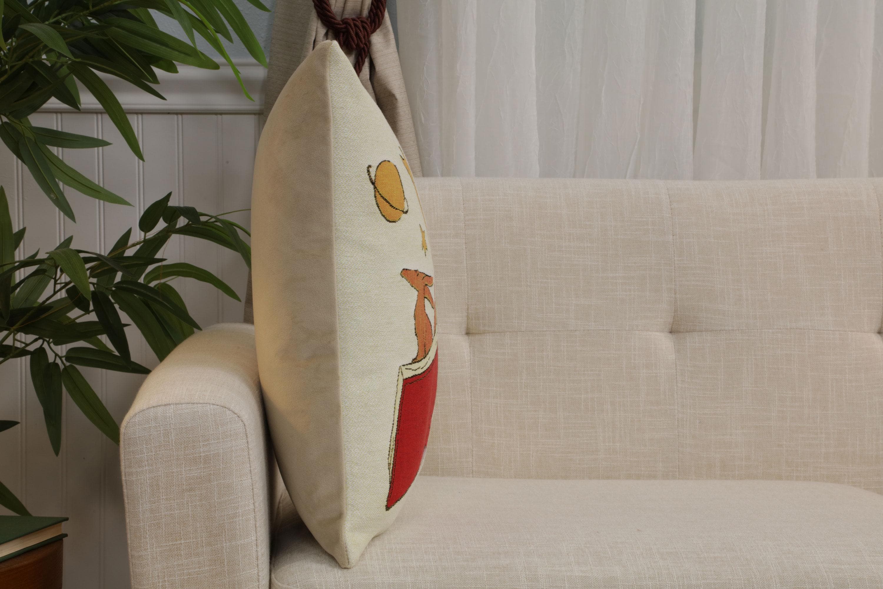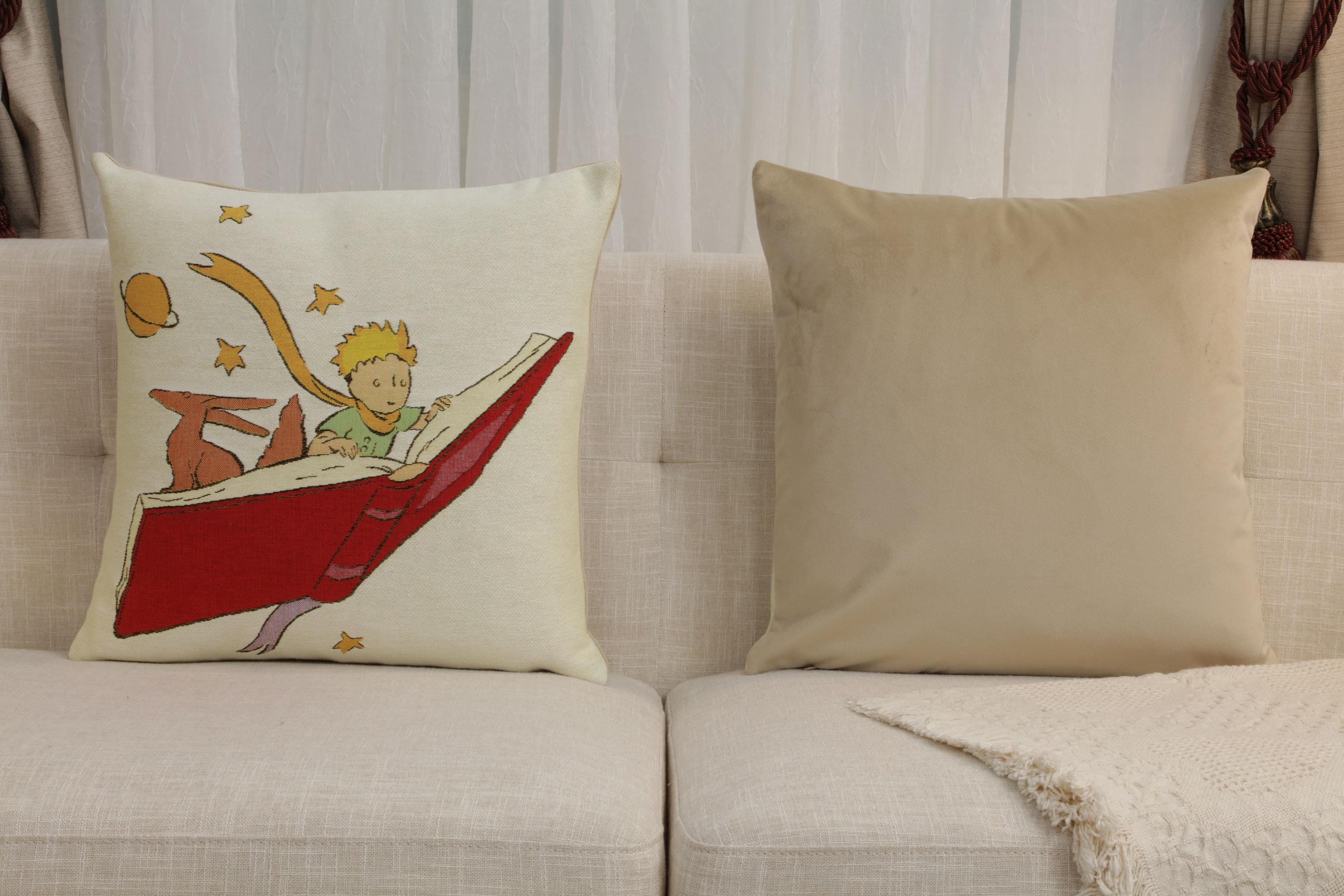 Celebrate the joy of reading and imagination with the Little Prince Reading Book Tapestry Cushion Cover, beautifully woven in Belgian jacquard style. Featuring the beloved Little Prince, this decorative pillow case adds warmth, creativity, and literary charm to sofas, beds, or reading corners.