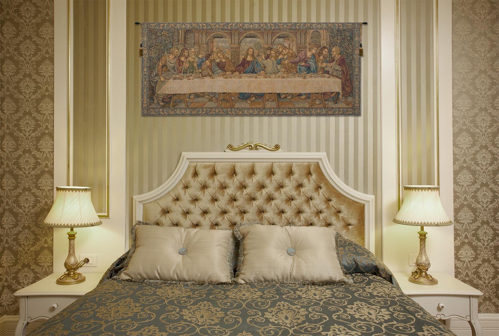 The Last Supper IIII is a Belgian jacquard woven wall tapestry. This iconic image is based on DaVinci's original painting.