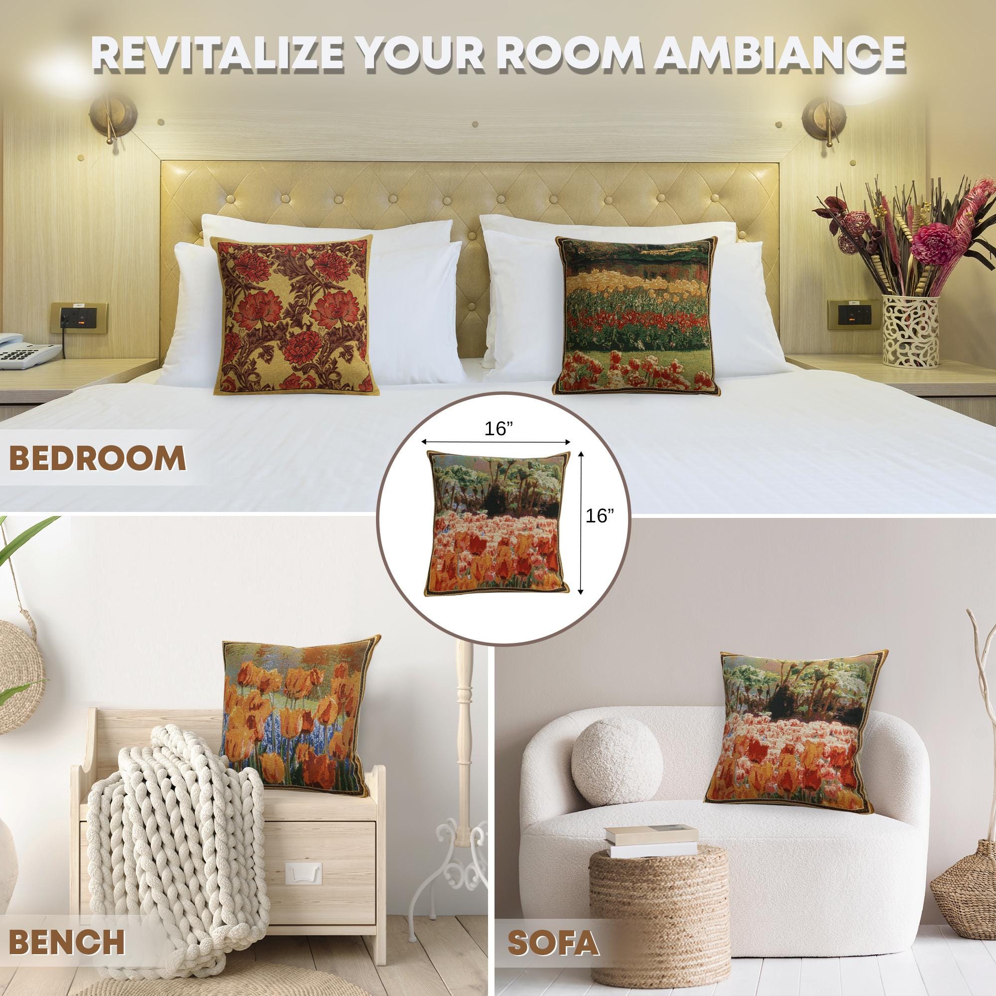Bring springโs vibrant beauty into your home with Sofa Cushion Cover. Inspired by the world-famous Keukenhof Gardens in the Netherlands, this pillows cover showcases a breathtaking scene of blooming tulips and vibrant floral splendor.