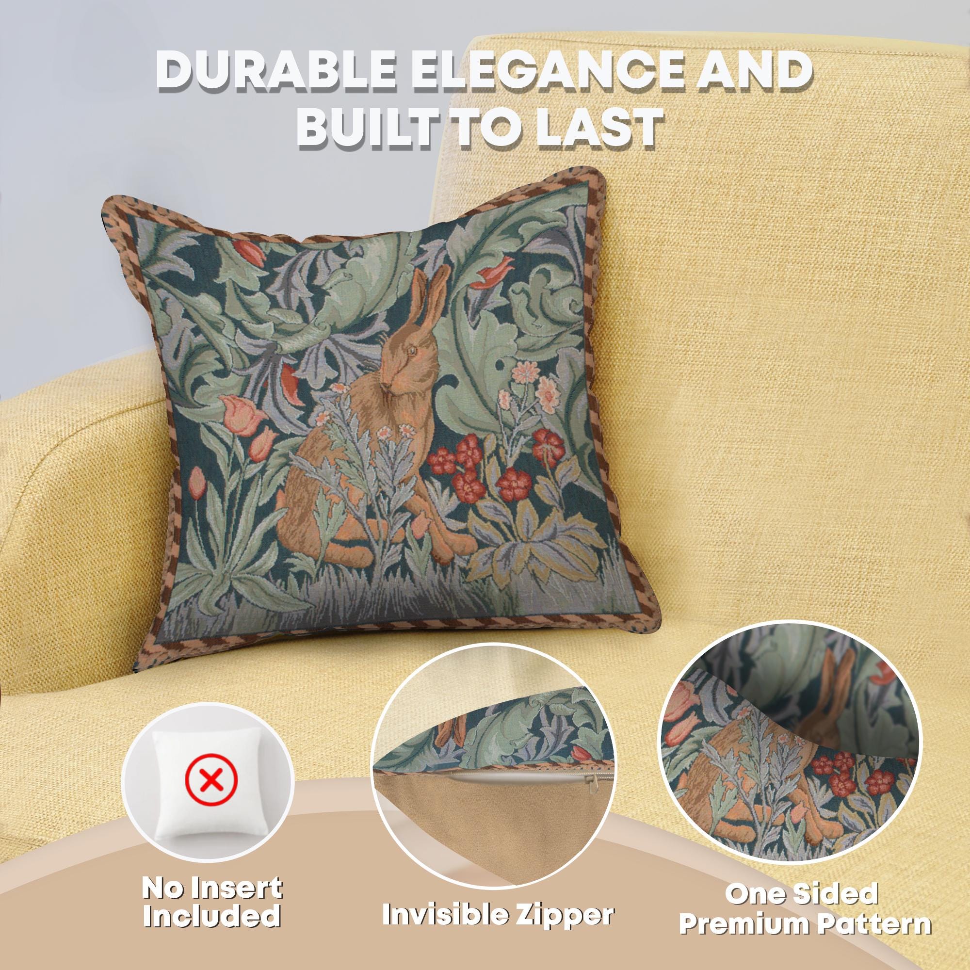 Rabbit As William Morris II Tapestry Cushion Cover represents a rabbit as imagined by the artist William Morris. The brilliance of the European tapestry cushion cover lies in the quality. The piece is one of the most beautiful throw pillow cases for your seating area.