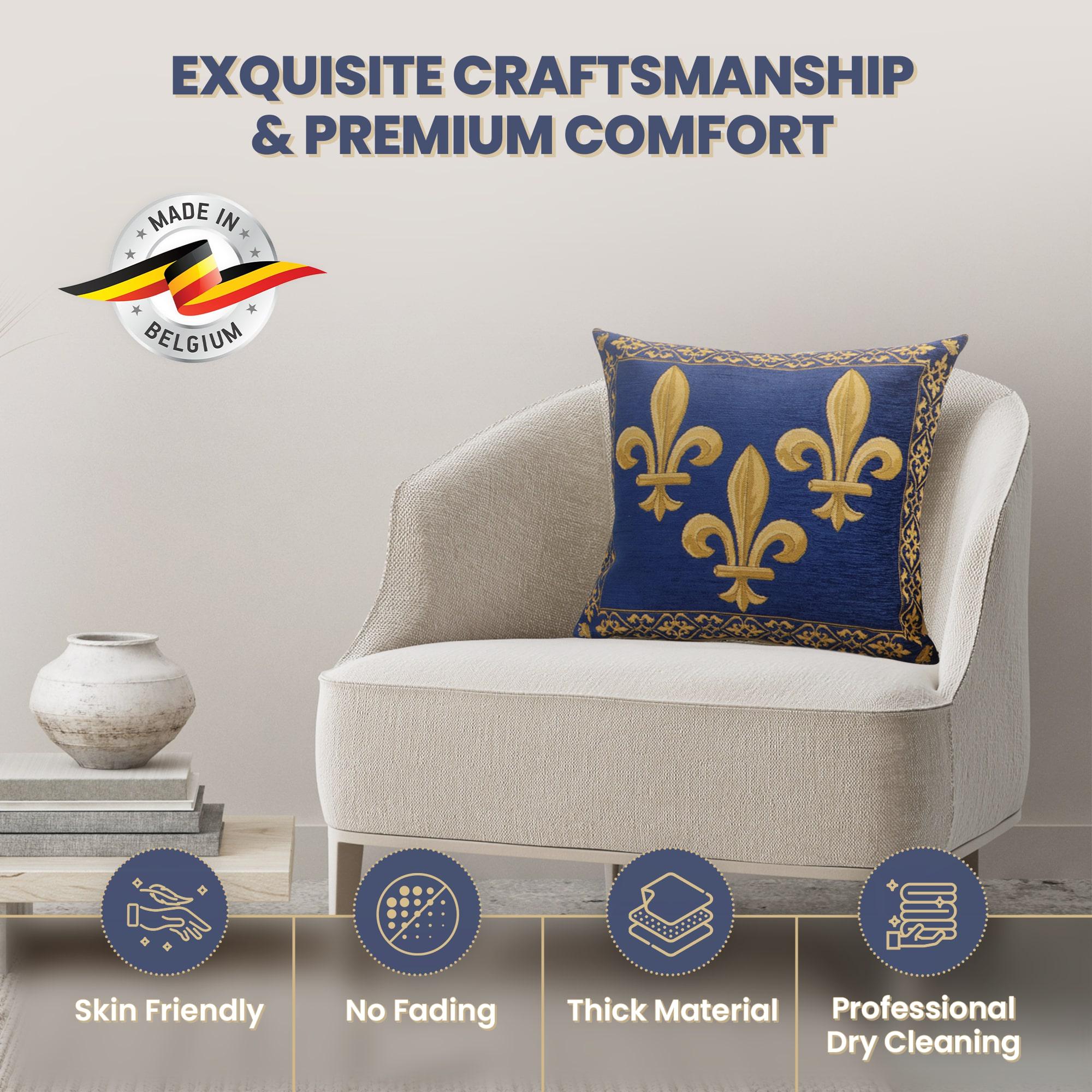 Bring timeless French grandeur into your home with this ๐ท๐ฎ๐ฐ๐พ๐๐ฎ๐ฟ๐ฑ ๐๐ผ๐๐ฒ๐ป ๐ฑ๐ฒ๐ฐ๐ผ๐ฟ๐ฎ๐๐ถ๐๐ฒ ๐ฝ๐ถ๐น๐น๐ผ๐ ๐ฐ๐ผ๐๐ฒ๐ฟ, showcasing three bold golden ๐๐น๐ฒ๐๐ฟ ๐ฑ๐ฒ ๐๐๐ ๐๐๐บ๐ฏ๐ผ๐น๐ against a striking royal blue background. A true statement piece, it reflects the elegance of French heraldry while blending seamlessly into ๐ฐ๐น๐ฎ๐๐๐ถ๐ฐ, ๐๐ฎ๐ฟ๐ผ๐พ๐๐ฒ, ๐ผ๐ฟ ๐ฟ๐ฒ๐ด๐ฎ๐น-๐ถ๐ป๐๐ฝ๐ถ๐ฟ๐ฒ๐ฑ ๐ฑ๐ฒ๐ฐ๐ผ๐ฟ ๐๐ต๐ฒ๐บ๐ฒ๐.