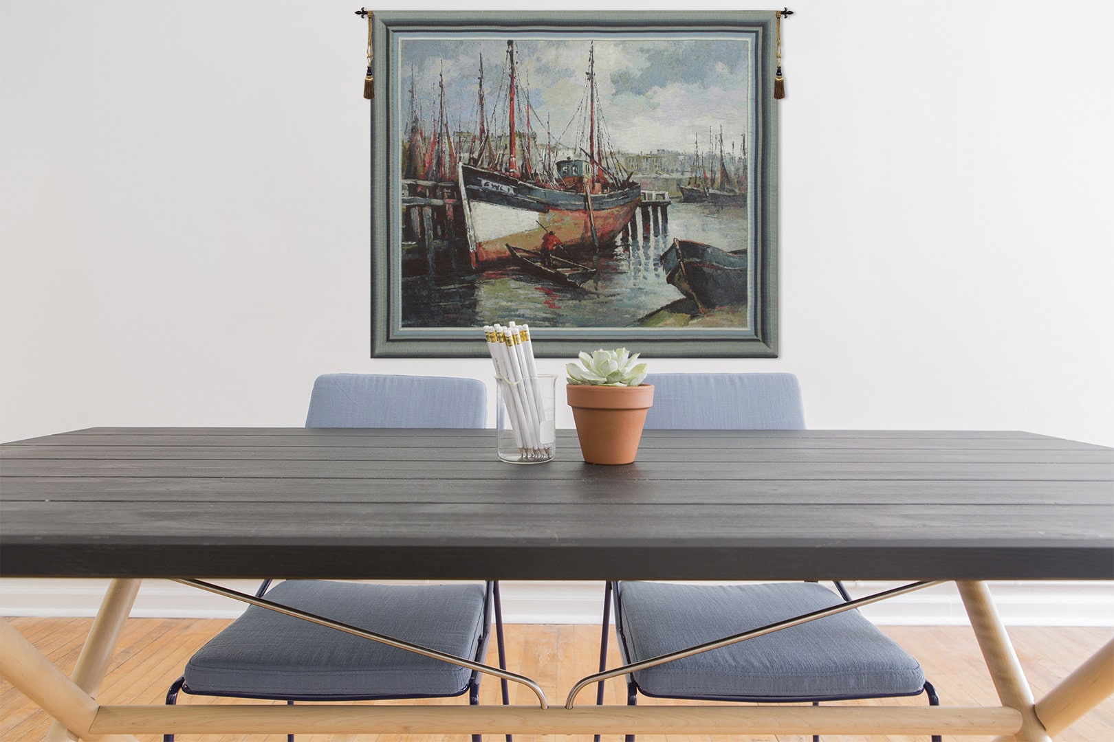 Bring the peaceful charm of the European coast into your home with the North Sea Harbour Wall Tapestry. This exquisite Belgian jacquard woven piece is inspired by an original painting from a Flemish artist, capturing the tranquil beauty of the Noordzee (North Sea) โ the stretch of water linking the European continent, the Scandinavian Peninsula, and Great Britain.