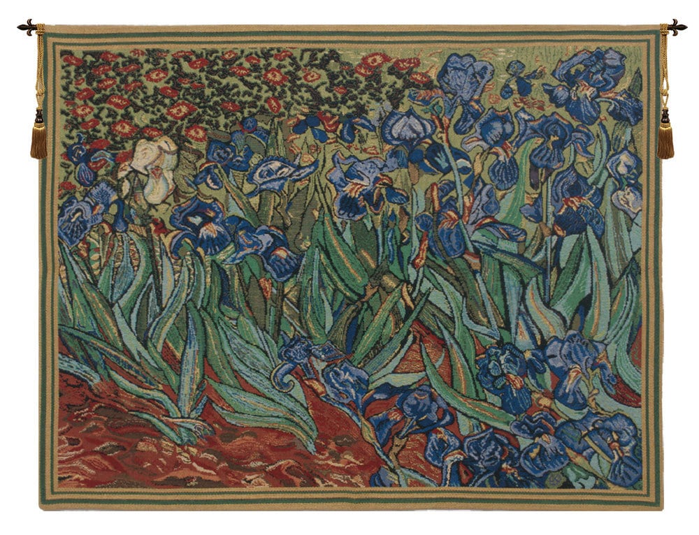 Immerse yourself in the beauty of Les Iris European Wall Tapestry, showcasing Van Goghโs iconic irises swaying gracefully in the breeze. This blue floral wall hanging features a double-lined border and meticulous detailing, creating a timeless and elegant addition to your decor.