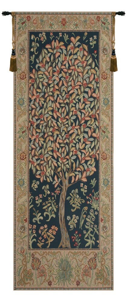 Woven with beautiful soft pastels, our Pastel Tree of Life Portiere Tapestry brings mystical motifs to the home. This vertical hanging tapestry is based on the famous work of William Morris, the 19th-century artist. The use of classic Mille-fleurs motifs surrounding the tree-of-life depiction harkens back to significant tapestry-weaving techniques of centuries past. The tree of life symbolizes immortality and is often found in folklore and cultural works. Our tapestry is made in a myriad of beautiful soft hues and features a lined back and tunneling for easy hanging on your own rod. Woven in Belgium.