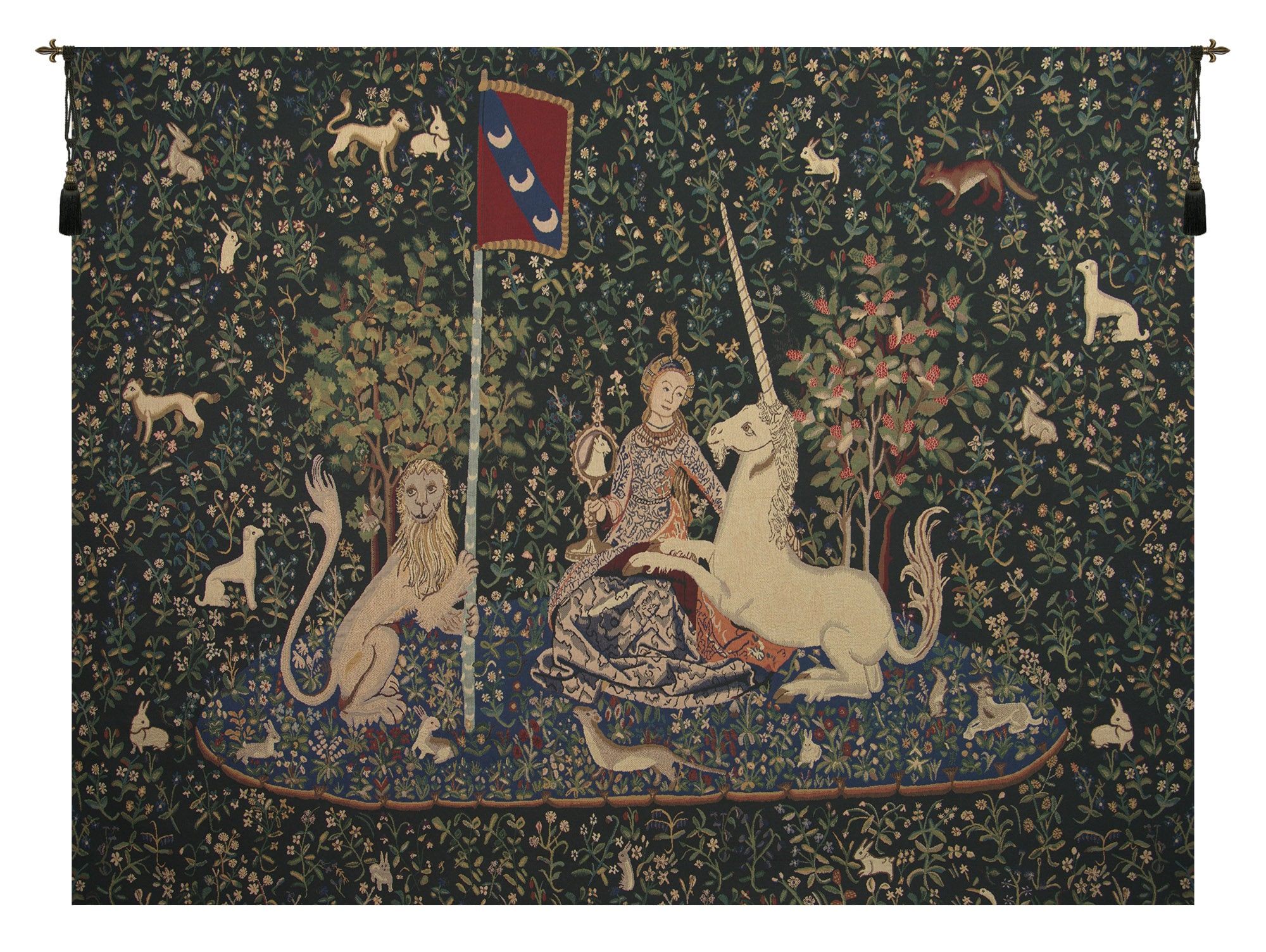 ๐ฆ Step into the elegance of the ๐๐๐ญ๐ก ๐๐๐ง๐ญ๐ฎ๐ซ๐ฒ ๐ฐ๐ข๐ญ๐ก ๐ญ๐ก๐ ๐๐ฎ๐ซ ๐๐๐๐ฒ ๐๐ง๐ ๐ญ๐ก๐ ๐๐ข๐ซ๐ซ๐จ๐ซ ๐๐๐ซ๐ค ๐๐๐ฉ๐๐ฌ๐ญ๐ซ๐ฒ,, a stunning Belgian jacquard weaving inspired by the legendary Lady and the Unicorn series. This exquisite extract illustrates the Sense of Sightโa noble lady holding a mirror for a unicorn to gaze at its reflection, while a lion stands watch.