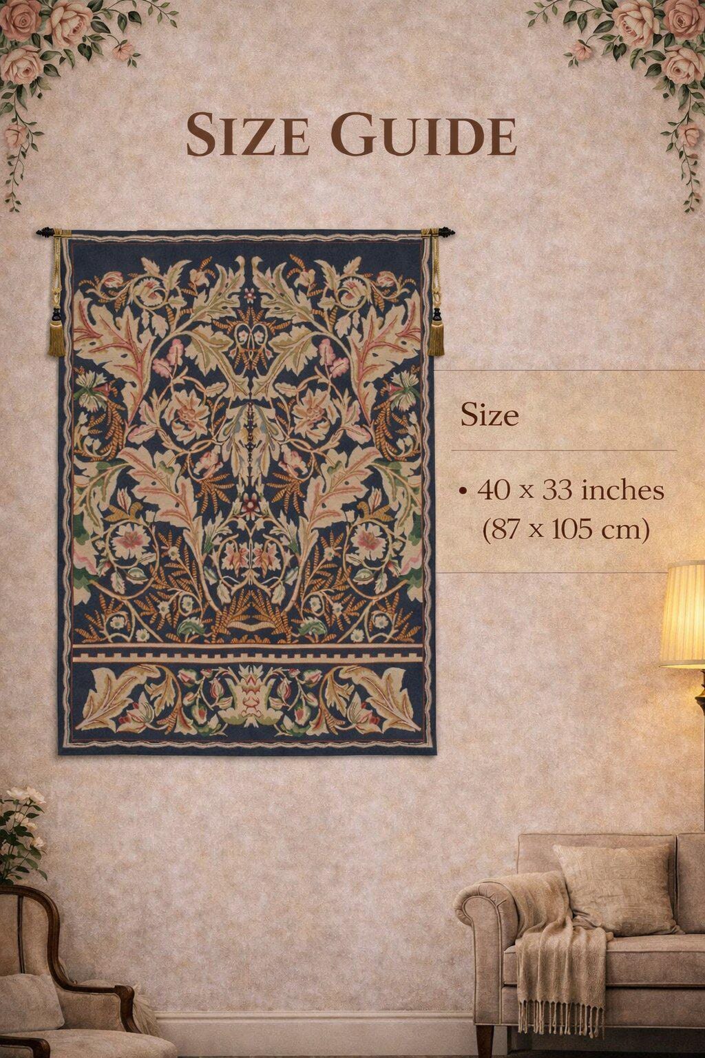 Crafted in Belgium using jacquard weaving techniques, this tapestry delivers detailed texture and long-lasting quality. The backing ensures durability, while the rod pocket allows quick and easy display.