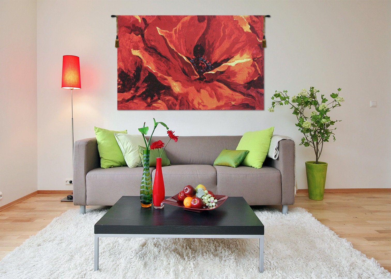 Transform your space with the radiant energy of โThese Dreamsโ, a stunning Belgian woven wall tapestry inspired by the expressive watercolor art of Simon Bull โ one of the worldโs most celebrated contemporary artists. This floral wall hanging reflects Bullโs global influences, including his time in England, the South American rainforest, and China, capturing a bold fusion of nature, color, and emotion.